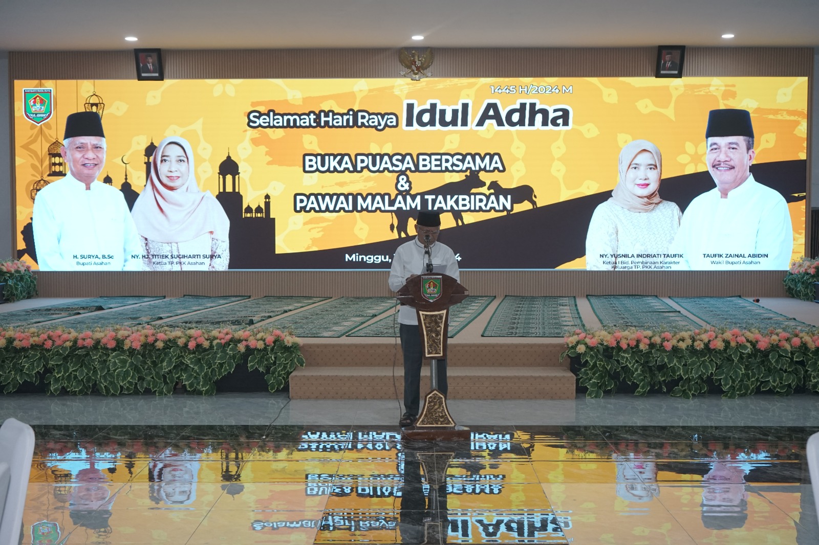 Sebelumnya melaksanakan pawai takbir Bupati Asahan bersama dengan Wakil Bupati Asahan Dandim 0208 Asahan, Danlanal Tanjung Balai Asahan, Plh Kapolres Asahan, Kajari Asahan, Mewakili Pengadilan Negeri Kisaran, Sekretaris Daerah Asahan, Kakankemenag Kabupaten Asahan, Ketua MUI Asahan, Ketua Imtaq Asahan, Para Asisten, Para Staf Ahli, tokoh agama, tokoh masyarakat, Asisten OPD, Camat, para tamu undangan lainnya melakukan buka puasa bersama di Aula Melati Kantor Bupati Asahan.