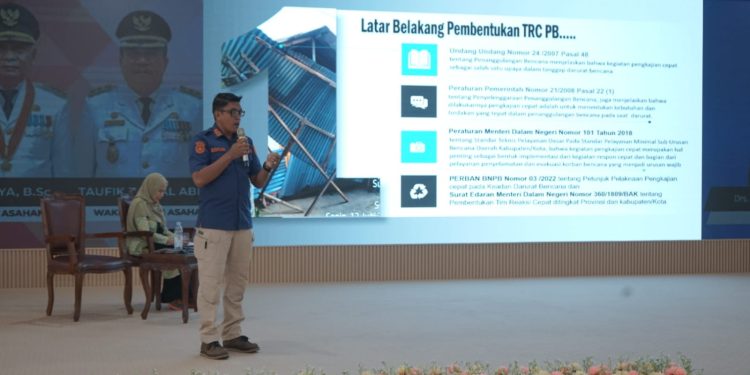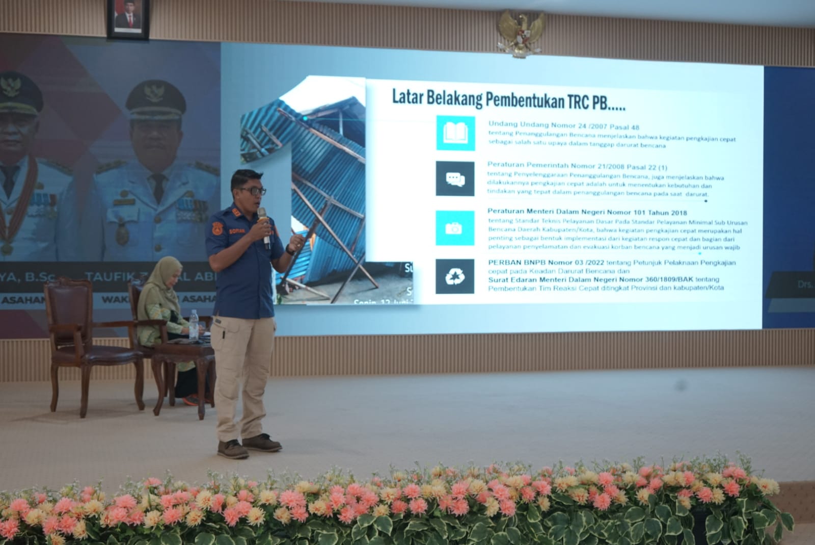 “Kaji cepat ini diperlukan dalam upaya untuk mengetahui kebutuhan penanganan darurat di wilayah bencana yang terjadi tentunya diperlukan tim yang memiliki kemampuan, kerjasama dan punya satu persepsi yang sama dalam penanganan darurat bencana hingga akhirnya dapat melahirkan suatu kesimpulan akan perlu atau tidaknya rekomendasi untuk ditetapkannya suatu keadaan darurat bencana untuk kemudahan-kemudahan akses dalam penanganan keadaan darurat bencana. Oleh karena itu maka perlunya penyamaan persepsi dan cara pandang terkait TRC penanggulangan bencana ini,” ujarnya.