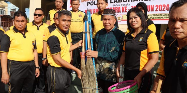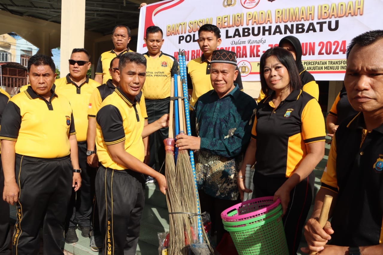 Dalam rangka menyambut Hari Bhayangkara ke-78 pada tahun 2024, Polres Labuhanbatu melaksanakan kegiatan bakti sosial di beberapa tempat ibadah. Kegiatan ini dipimpin oleh Wakapolres Labuhanbatu Kompol H. Matondang, SH, MH, Jum’at (21/6/2024).