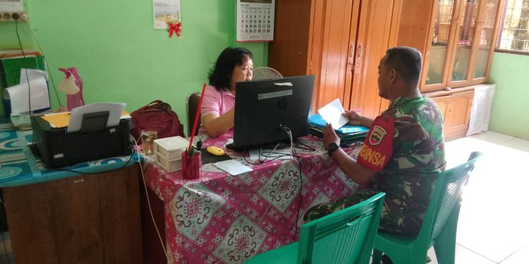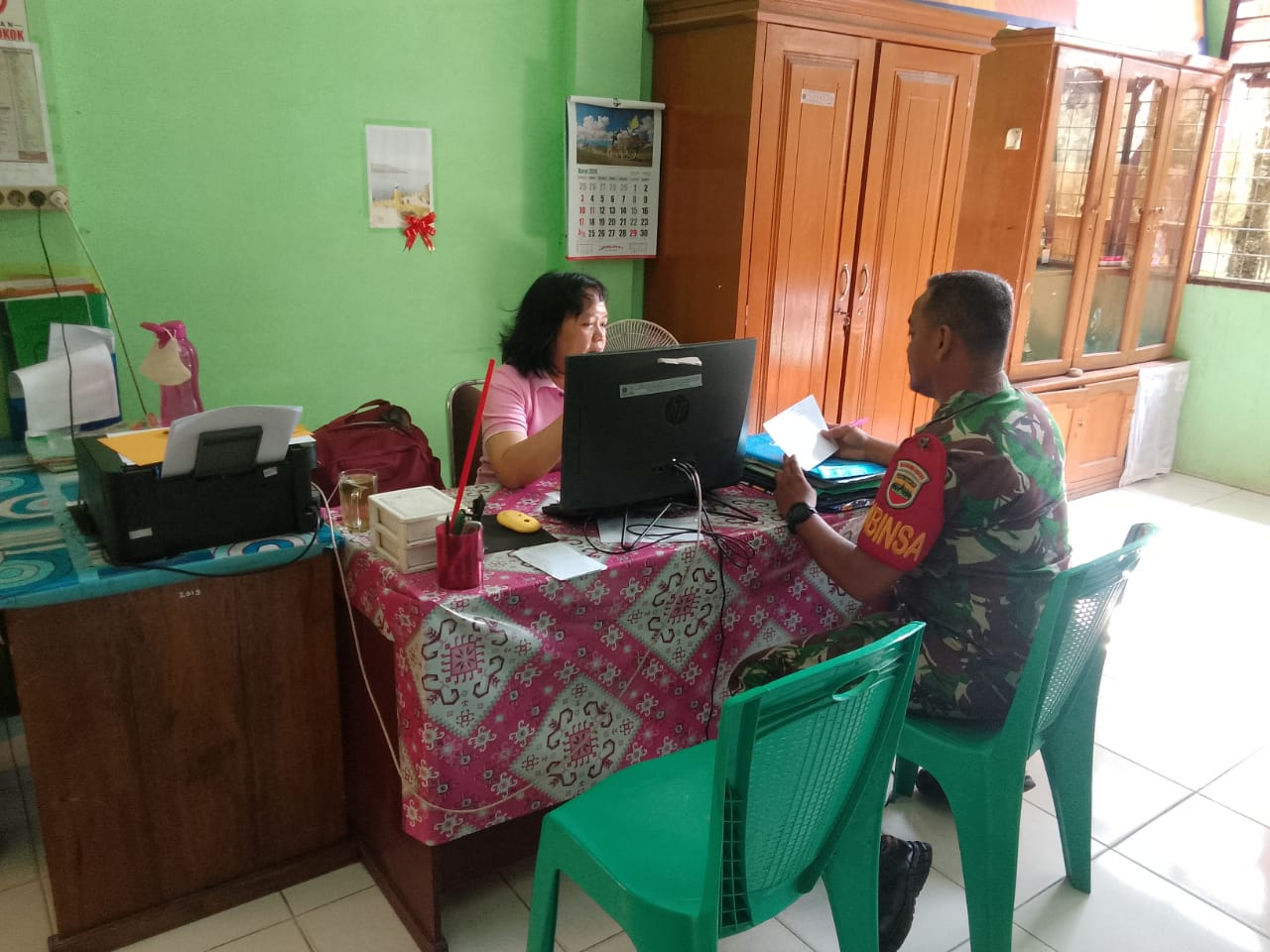 Kegiatan ini merupakan salah satu kegiatan rutin harian yang dilaksanakan Babinsa dalam memonitoring wilayah binaannya. Dalam kegiatan sambangnya, Serda Asrul Sihite melakukan kegiatan Komunikasi Sosial (Komsos) dengan para guru di Sekolah Dasar milik Pemerintah itu.