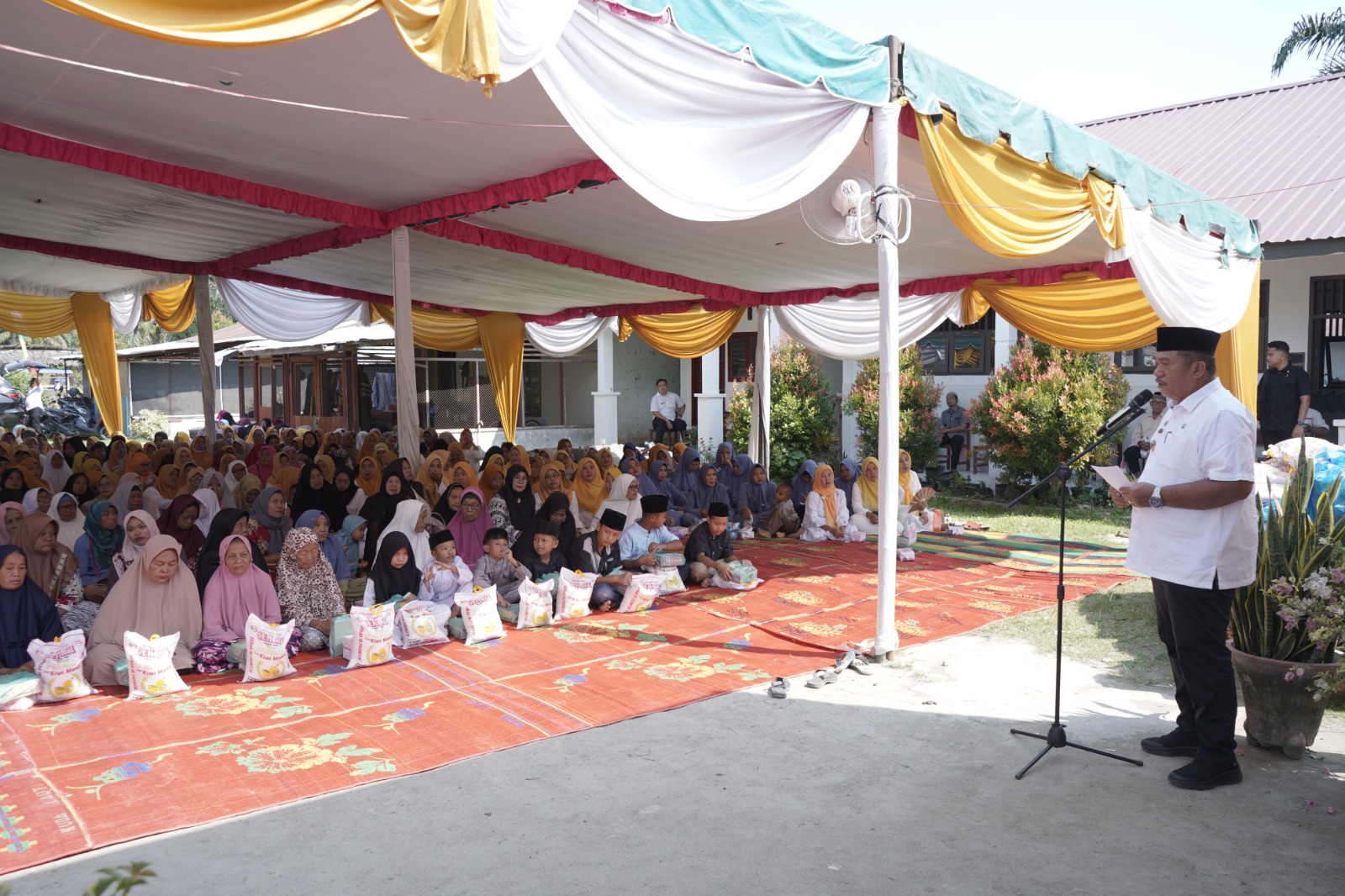 Sebelum memberikan bimbingan dan arahan Wakil Bupati di temani Ketua I Bidang Pembinaan Karekater Keluarga TP PKK Kabupaten Asahan memberikan santunan kepada 120 orang yang terdiri dari 58 orang kaum duafa, 44 orang fakir miskin dan 18 orang anak yatim