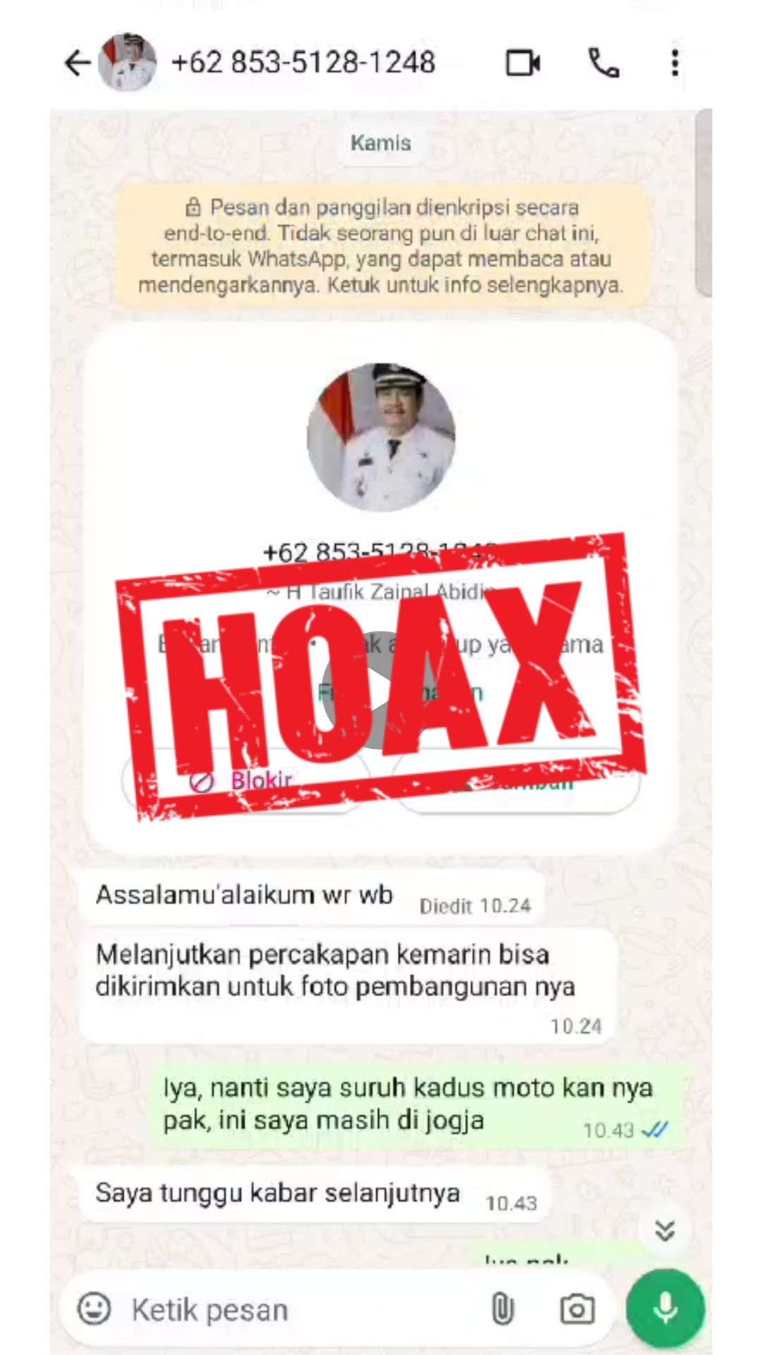 Akun tersebut menggunakan foto Taufik Zainal Abidin dan melakukan komunikasi kepada beberapa orang dengan maksud yang berbeda.