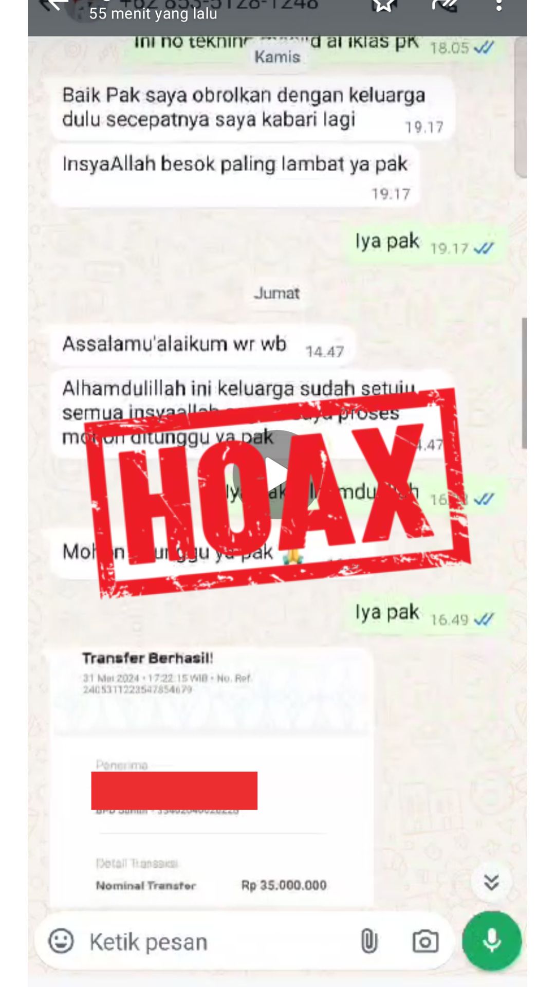 Namun, setelah melakukan komunikasi ulang untuk menyampaikan hal tersebut, nomor pelaku mendadak tidak dapat dihubungi. Kontan saja, Hernanto merasakan ada kejanggalan dalam peristiwa itu.