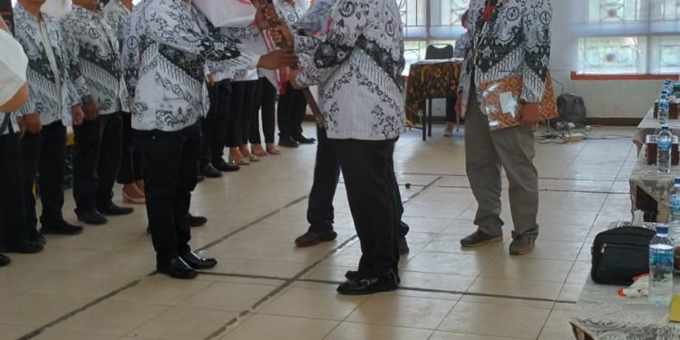 Ketua PGRI Sumut DR. H Saipul Abdi SE SH MPd melantik kepengurusan Persatuan Guru Republik Indonesia (PGRI) Kabupaten Pakpak Bharat masa bakti 2024-2029 di gedung Serbaguna Selasa (17/07/24).
