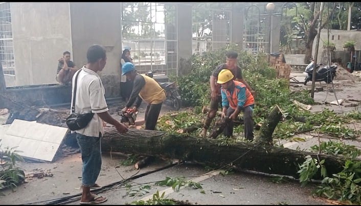 TASLABNEWS, ASAHAN- Akibat hujan lebat disertai angin kencang membuat pohon tumbang di Jalan Ir Juanda, Kelurahan Lestari, Kecamatan Kisaran Timur, Kabupaten Asahan, Sumut.