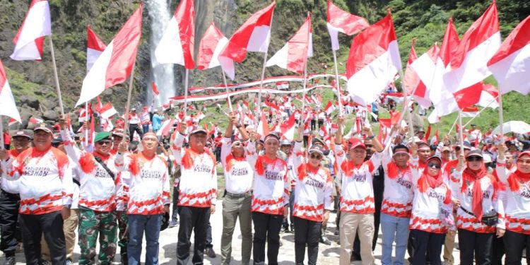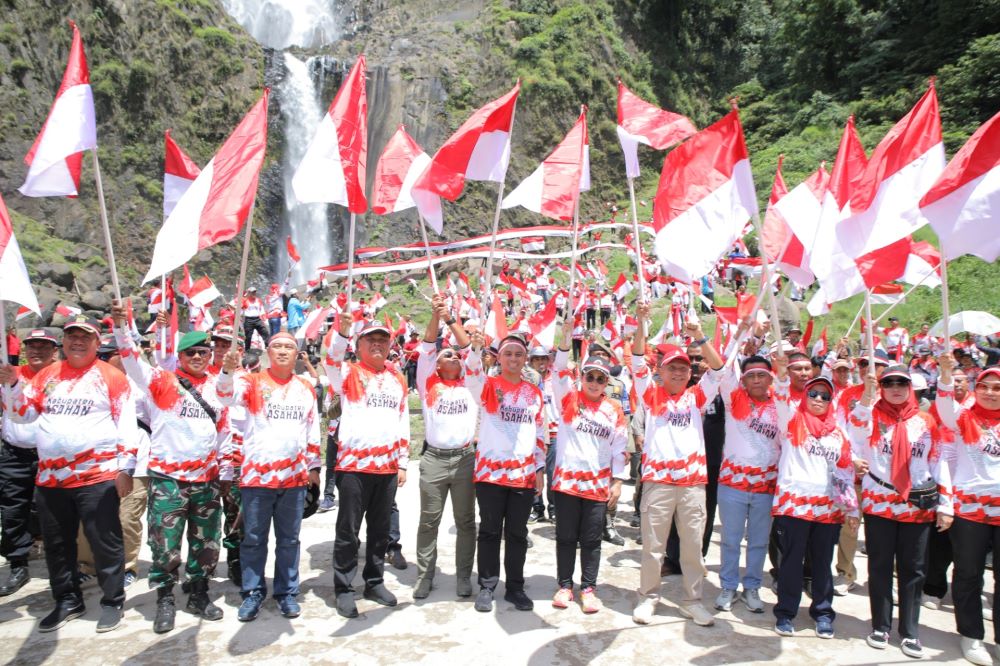TASLABNEWS, ASAHAN – Dalam menyambut Hari Ulang Tahun (HUT) Republik Indonesia (RI) ke-79,Unsur Forkopimda Kabupaten Asahan mengibarkan Bendera Merah Putih di Wisata Alam Air Terjun Ponot, Kecamatan Aek Songsongan, Kabupaten Asahan, Sabtu