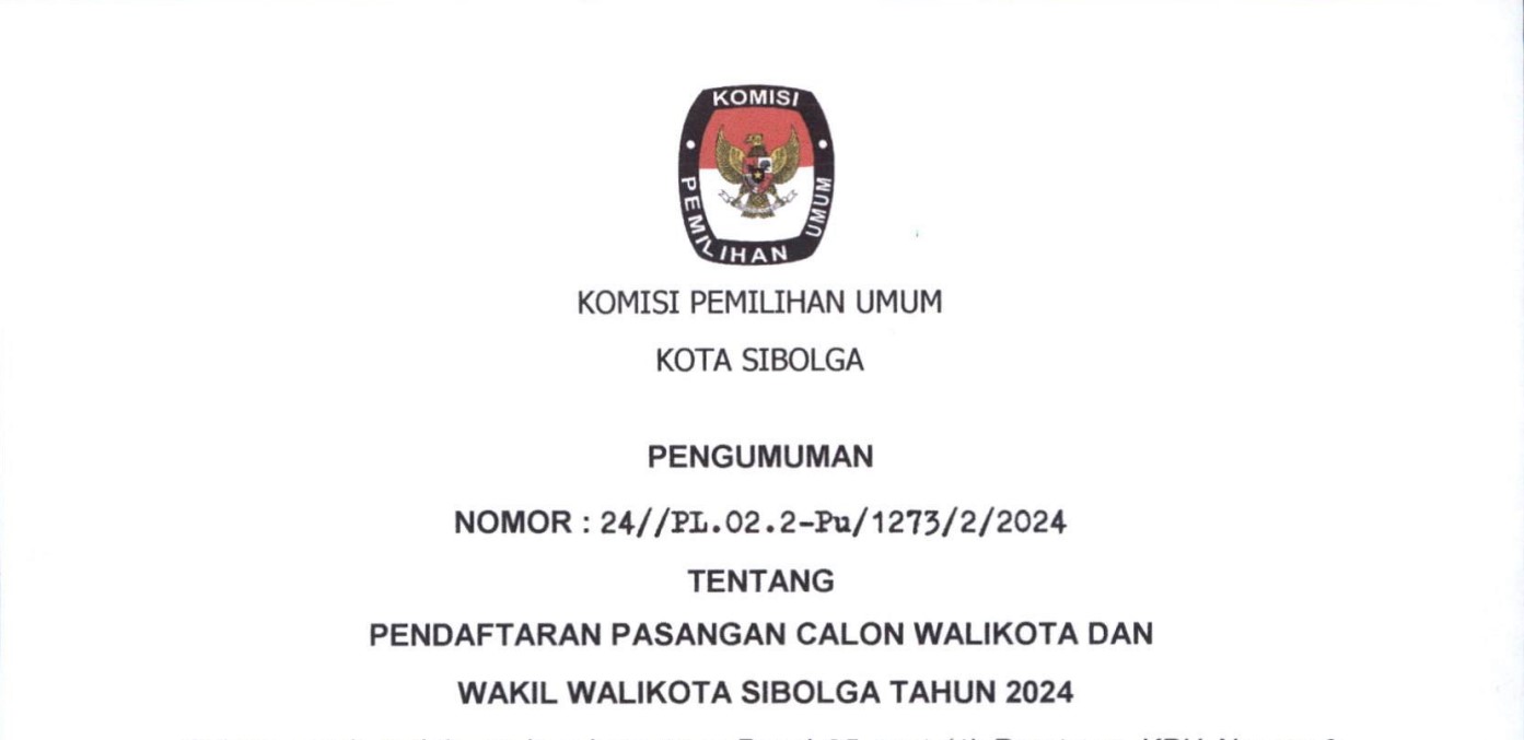 Pengumuman Pendaftaran Pasangan Calon Walikota dan Wakil Walikota Sibolga 2024