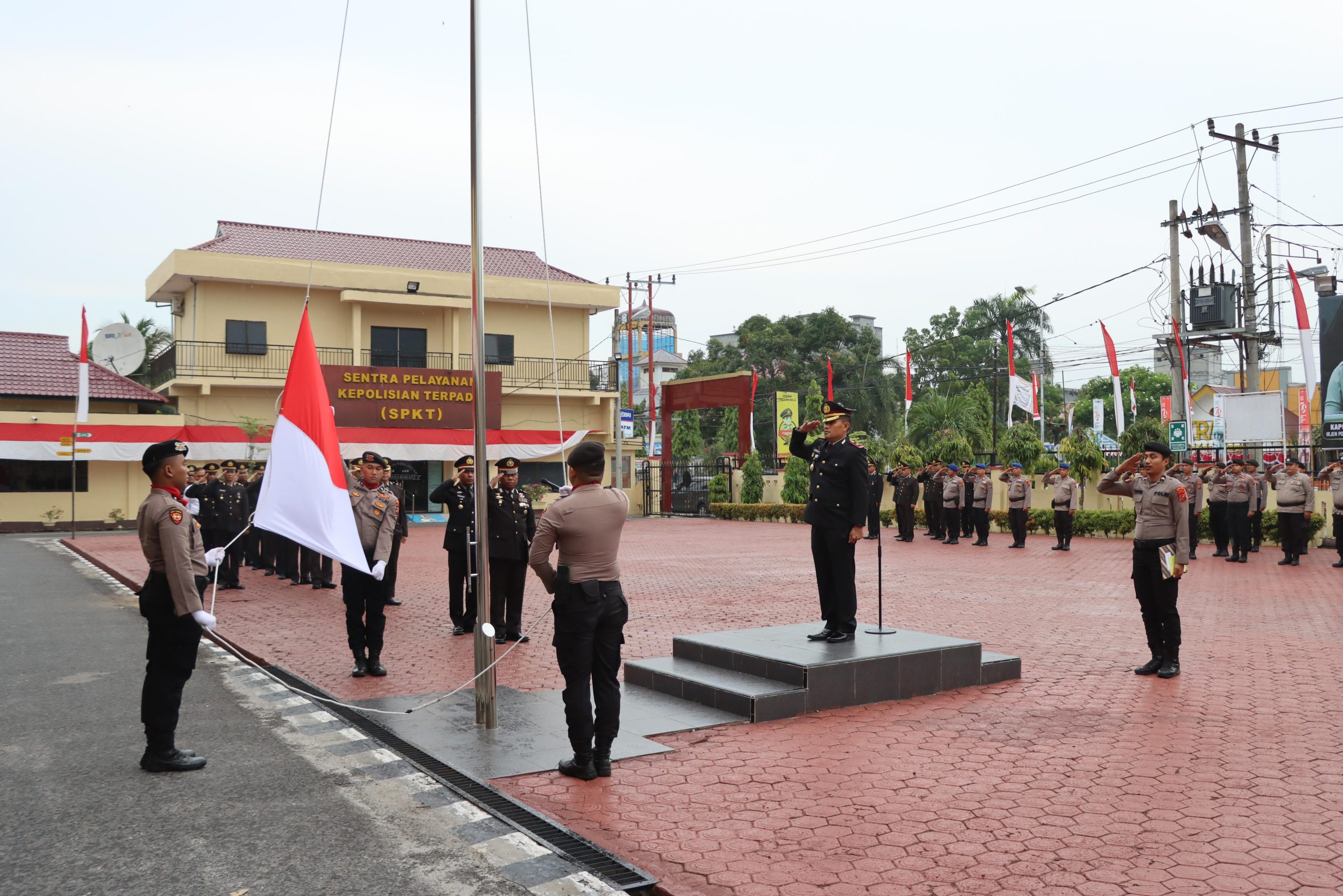 Kapolres Tanjungbalai AKBP Yon Edi Winara, SH, SIK, MH yang diwakili Wakapolres Tanjungbalai Kompol M P Pardede, SH bertindak sebagai inspektur upacara dalam upacara yang dihadiri oleh para perwira, bintara dan ASN se Polres Tanjungbalai.
