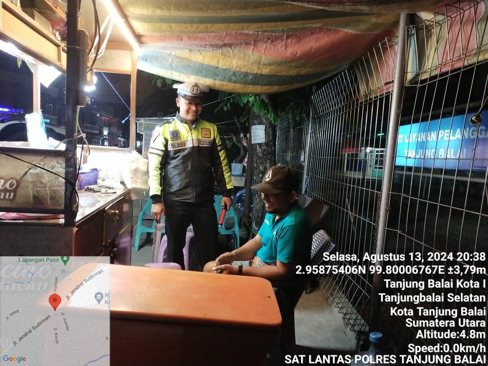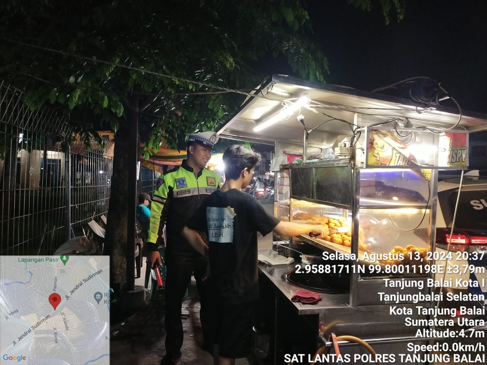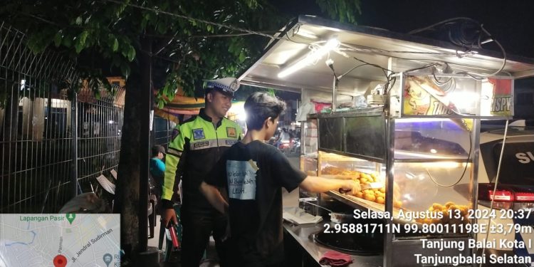 “Setiap malam personil Sat Lantas Polres Tanjungbalai melakukan patroli dengan menyambangi para pedagang kali lima di kawasan Jalan Jendral Sudirman, tepatnya di simpang Jalan Suparman yang merupakan tumpuan para pedagang kaki lima memasarkan dagangannya pada malam hari. Lokasi tersebut menjadi target karena kondisi lokasinya yang selalu ramai dengan pengunjung sehingga berpotensi terjadi kemacetan arus lalu lintas khususnya pada malam hari,” ujar AKP Agustinus Banjarnahor.