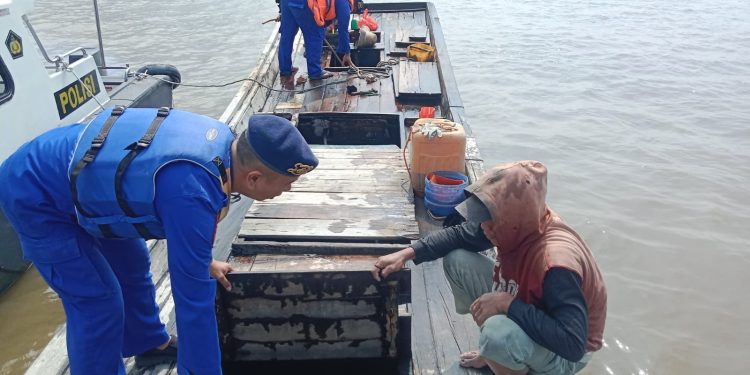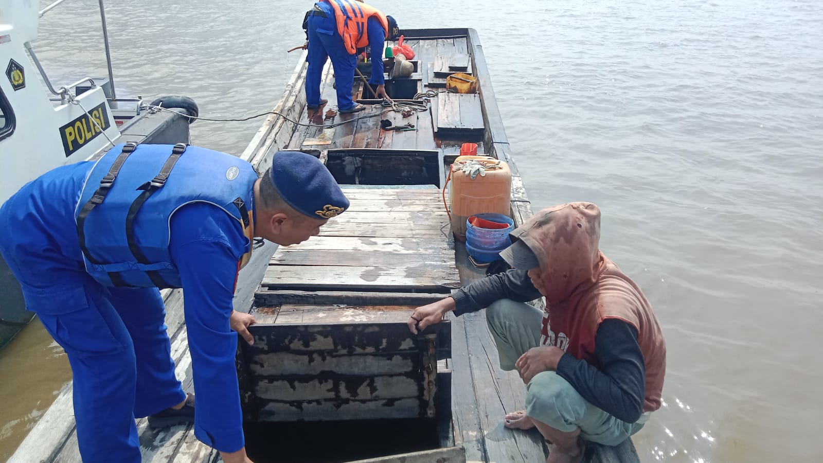 Pada saat melakukan kegiatan patroli perairan, Senin 19 Agustus 2024 sekira pukul 14.45 WIB, satu unit kapal tanpa nama dan nomor lambung dilakukan penghentian dan pemeriksaan oleh personel Sat Polairud Polres Tanjungbalai.