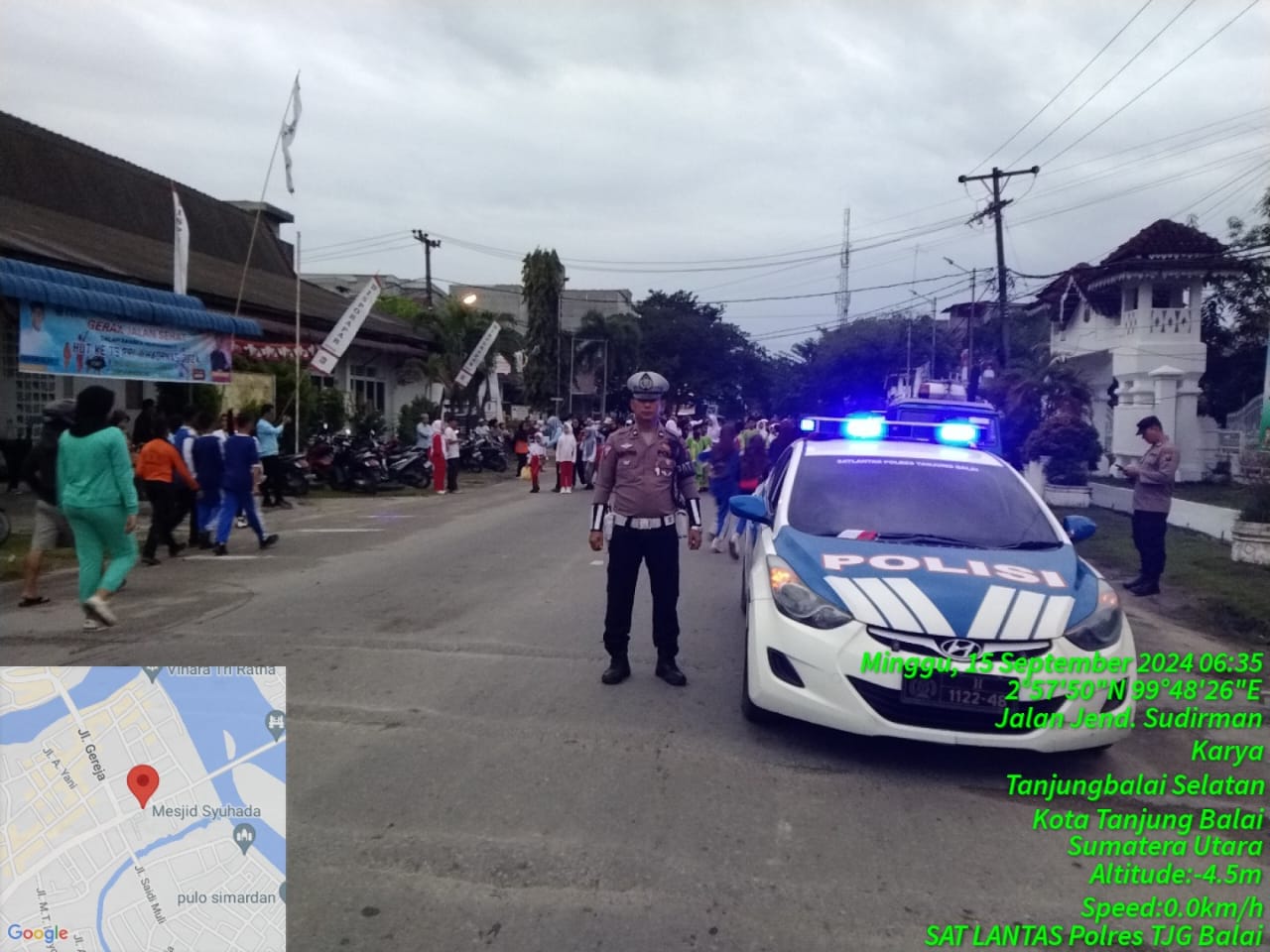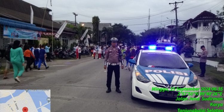 TASLABNEWS, TANJUNGBALAI – Guna kelancaran dan keamanan dari kegiatan gerak jalan santai dalam rangka memperingati Hari Olahraga Nasional (Haornas) ke-41 dan HUT ke 79 RI, Polres Tanjungbalai kerahkan personilnya untuk melaksanakan pengamanan dan pengaturan arus lalu lintas.