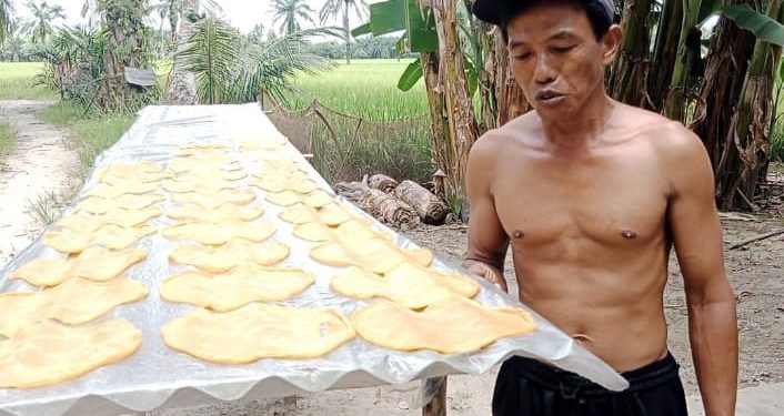 TASLABNEWS, ASAHAN-Tingginya persaingan dan susah nya mencari kerja di pertukangan bangunan membuat Bakri (49) memberanikan beralih menekuni usaha pembuatan kerupuk udang.