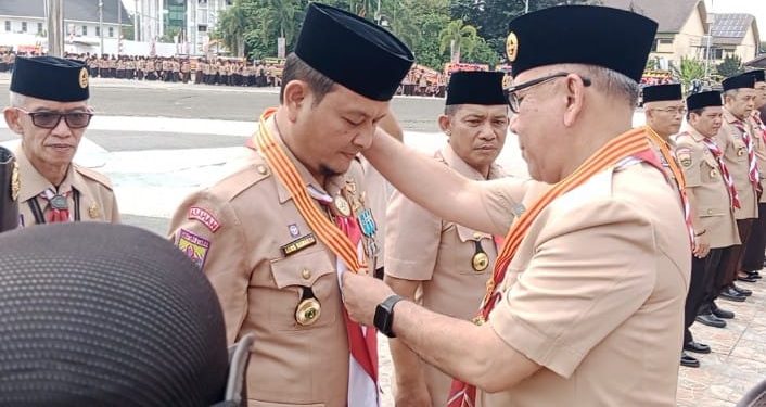 Selain menghadiri langsung kegiatan Apel hari pramuka, KaKwarcab Asahan ka Agus Ramanda menerima lencana melati tingkat Nasional.