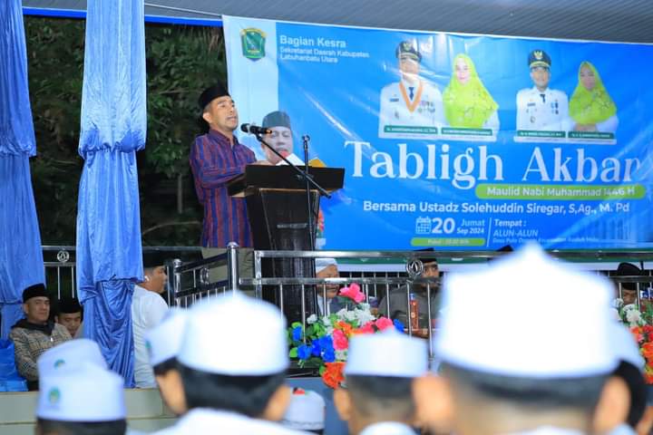 TASLABNEWS, LABURA-Wakil Bupati Labuhanbatu Utara (Labura), Dr. H. Samsul Tanjung, didampingi Sekretaris Daerah, Dr. H. Muhammad Suib dan pimpinan Organisasi Perangkat Daerah (OPD) menghadiri acara tabligh akbar yang diselenggarakan oleh Pemerintah Kabupaten Labuhanbatu Utara.