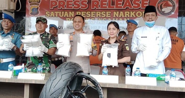 TASLABNEWS, ASAHAN-Polres Asahan, Senin (25/3/2024) pukul 10.30 wib, bertempat di halaman belakang Polres Asahan gelar press release tindak pidana narkotika. Pada kegiatan itu diketahui personel Polres Asahan berhasil amankan 18 Kg Sabu.