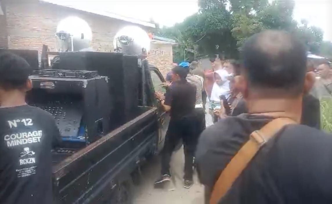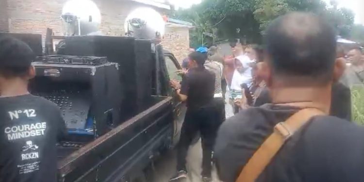 Setibanya para pendemo di kantor Desa Buntu Pane mereka di hadang oleh masyarakat Desa Buntu Pane yang menolak aksi unjukrasa tersebut, Kamis (10/10/2024)