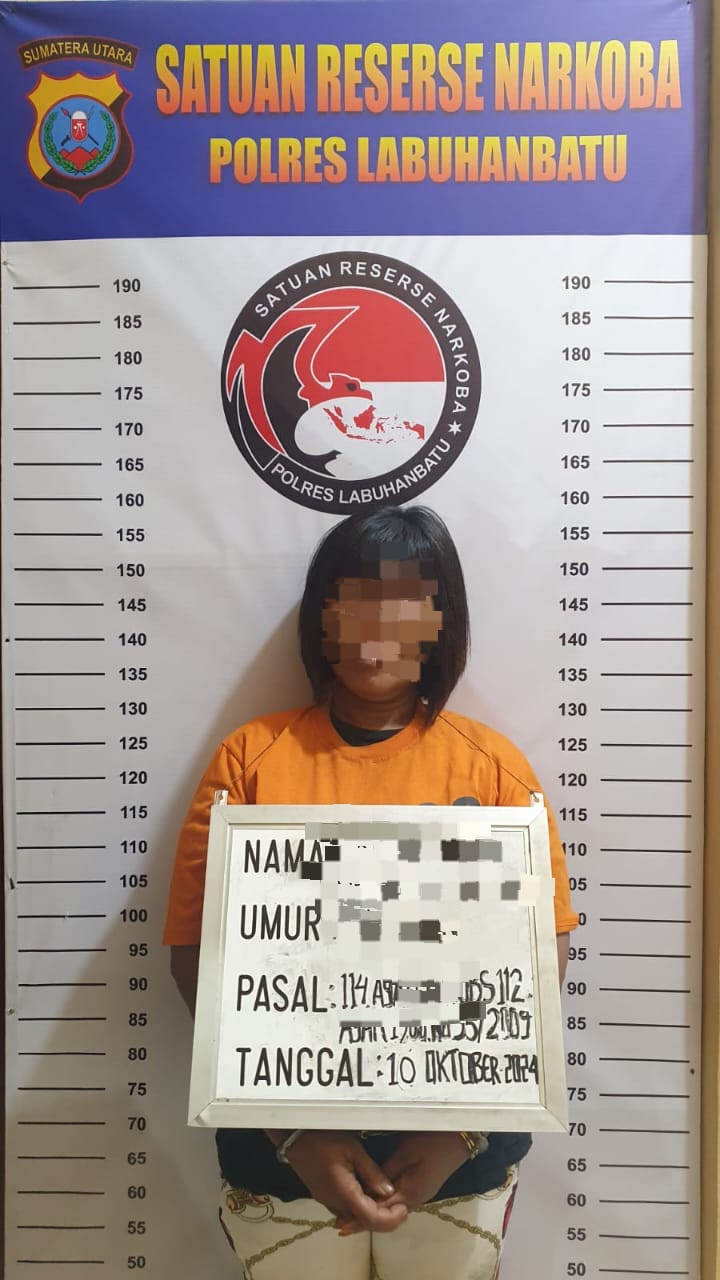 Polisi kali ini menangkap pelaku penyalahgunaan narkoba yakni seorang wanita berinisial HS alias Bu Rek (51) warga Dusun Data Nauli, Desa Tebing Linggahara Baru, Kecamatan Bilah Barat, Kamis (10/10/2024).