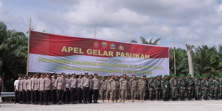 TASLABNEWS, ASAHAN-Bertempat di gerbang Tol Kisaran Kabupaten Asahan, pihak Polres Asahan dan Kodim 0208 AS laksanakan kegiatan Apel Gelar Pasukan pengamanan untuk menyambut kunjungan kerja Presiden Ir H. Joko Widodo.