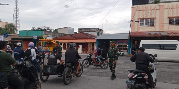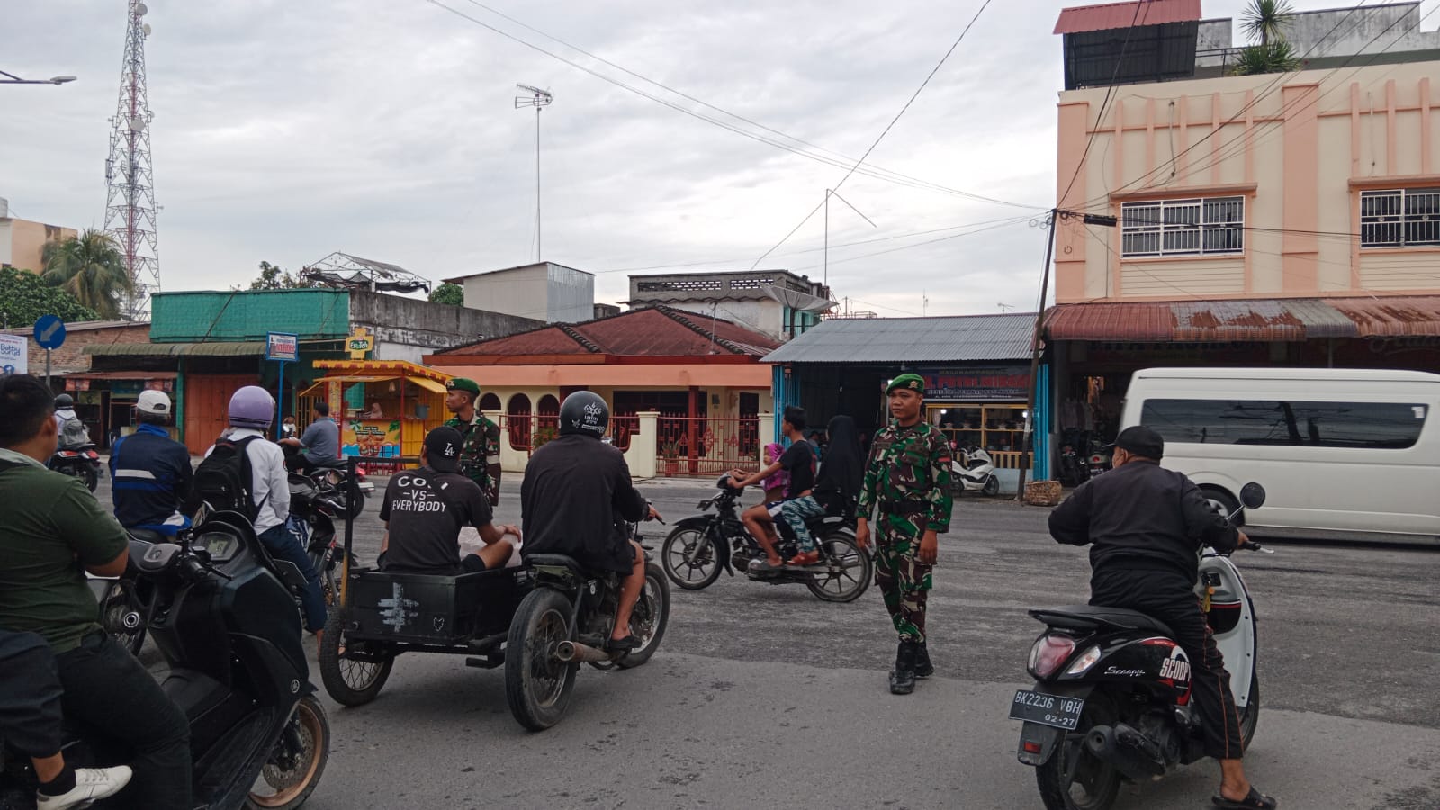 Tampak dari TNI dan Polri melakukan penjagaan di setiap sudut dan persimpangan di Kota Kisaran.