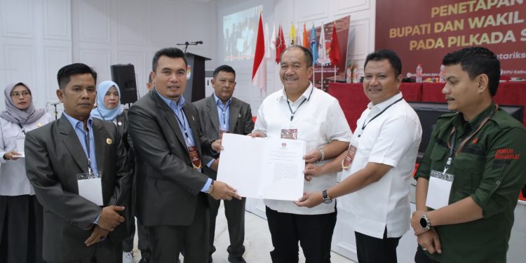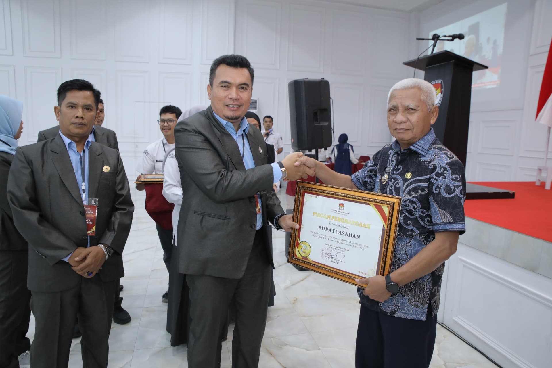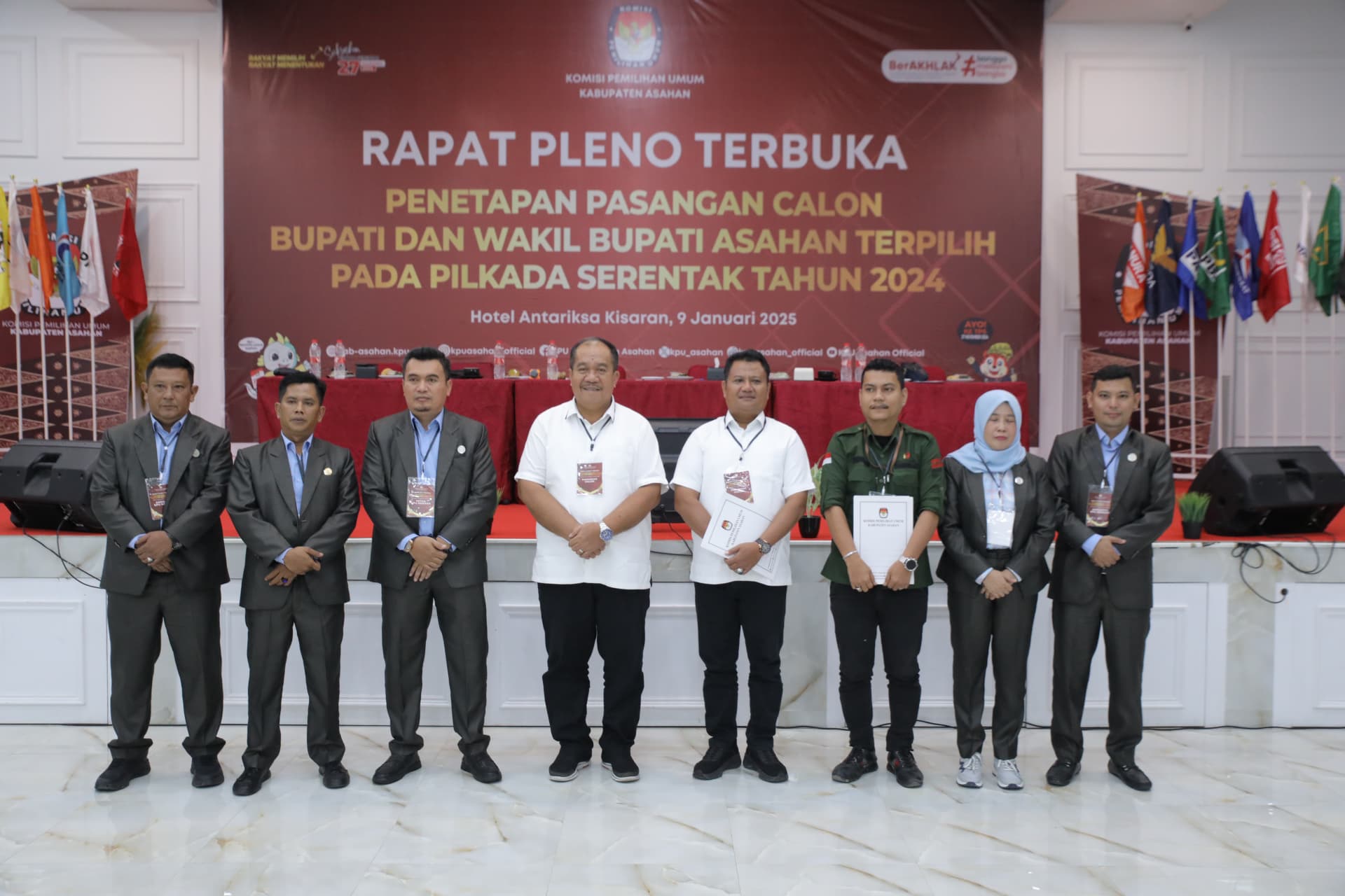 ASAHAN – Berdasarkan Surat Keputusan Komisi Pemilihan Umum Kabupaten Asahan Nomor 5 Tahun 2025 Tentang Penetapan Pasangan Calon Bupati dan Wakil Bupati Terpilih Kabupaten Asahan Tahun 2025, KPU menetapkan pasangan Calon Bupati dan Wakil Bupati Kabupaten Asahan.