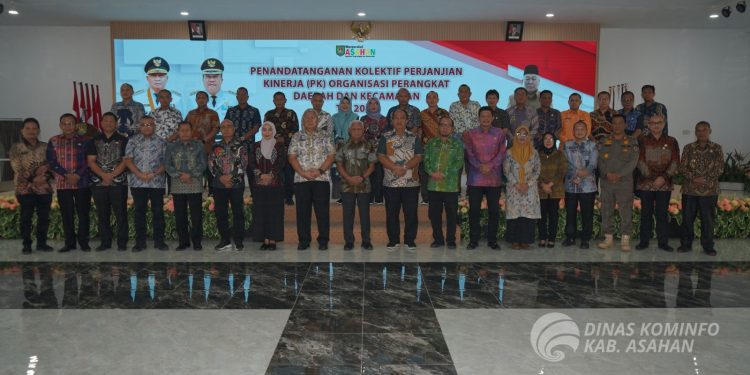 ASAHAN – Pemerintah Kabupaten Asahan melalui Bupati Asahan H. Surya BSc melakukan penandatanganan kolektif Perjanjian Kinerja (PK) Organisasi Perangkat Daerah dan Kecamatan di Aula Melati Kantor Bupati Asahan, Kamis (30/01/2025).