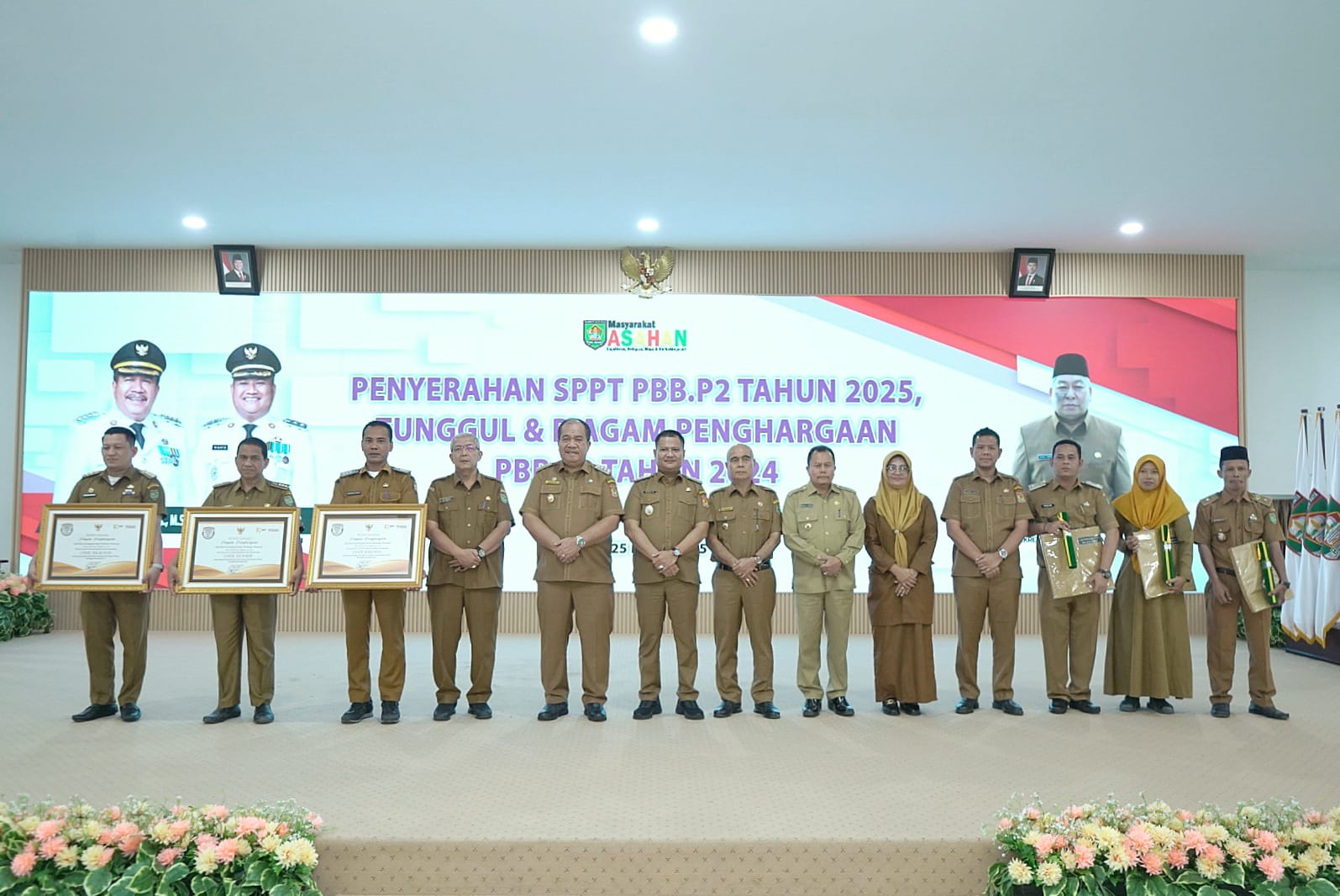 ASAHAN – Bupati Asahan Taufik Zainal Abidin Siregar, S.Sos., M.Si bersama Wakil Bupati Asahan Rianto, SH., MAP ikuti Penyerahan SPPT PBB-P2 Tahun 2025 Kabupaten Asahan yang diselenggarakan oleh Badan Pengelolaan Pendapatan Daerah (Bappenda) Kabupaten Asahan, kegiatan ini berlangsung di Aula Melati Kantor Bupati Asahan pada hari Selasa (25/03/2025).