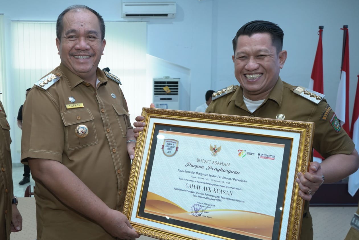 Sebagai rangkaian acara, dilakukan penyerahan piagam penghargaan kepada Kecamatan dan Desa berprestasi dalam pengelolaan dan realisasi SPPT PBB-P2 Tahun 2024 yang memperoleh peringkat 1, 2 dan 3 untuk Camat Aek Kuasan, Camat Sei Dadap, Camat Rahuning dan untuk Kepala di Desa memperoleh peringkat 1, 2 dan 3 di Antaranya Kepala Desa Alang Bombon Kecamatan Aek Songsongan, Kepala Desa Perkebunan Sei Dadap I/II Kecamatan Sei Dadap dan Kepala Desa Air Teluk Kiri Kecamatan Teluk Dalam. (rel)