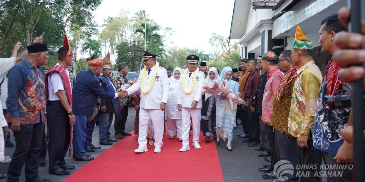 ASAHAN – Alunan iringan-iringan Marhaban mengumandang di Rumah Dinas Bupati Asahan, Minggu (02/03/2025), menyambut kedatangan Bupati Asahan Taufik Zainal Abidin Siregar, S.Sos., M.Si dan Wakil Bupati Asahan Rianto, SH., MAP periode 2025-2030 usai dilantik oleh Presiden Republik Indonesia Prabowo Subianto,tanggal 20 Februari 2025 di Istana Negara Jakarta dan dilanjutkan dengan pelaksanaan Retret selama 8 hari, sejak tanggal 21-28 Februari 2025 di Akademi Militer (Akmil), Magelang.