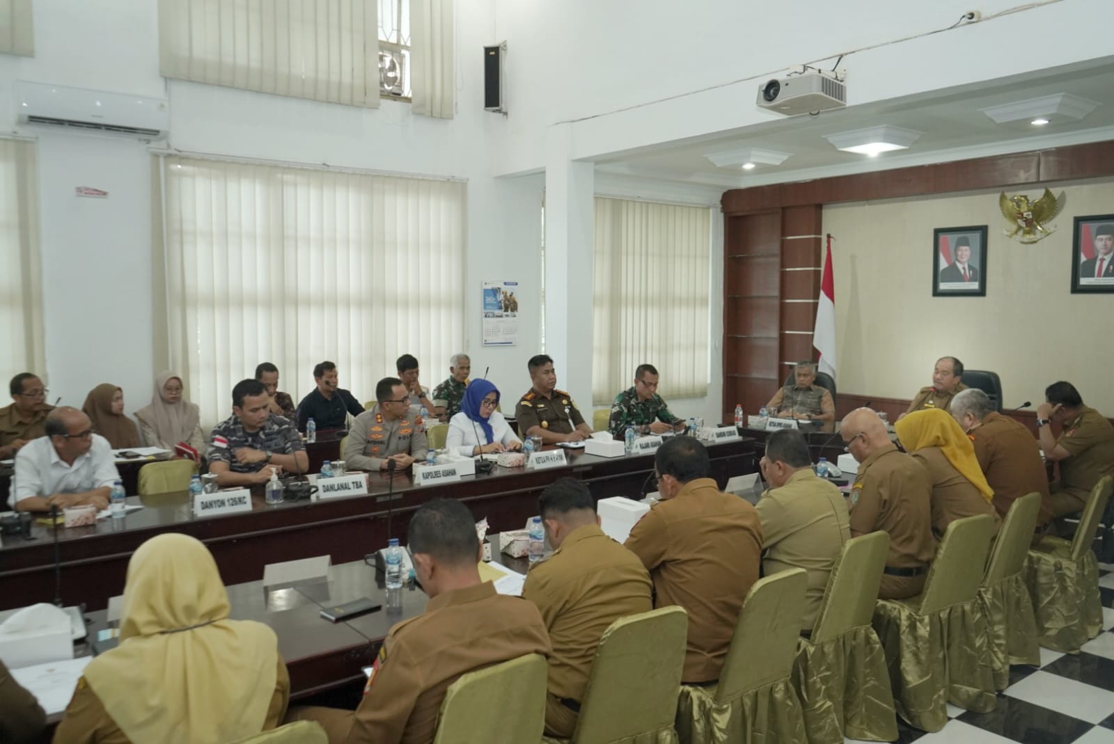 Tampak dalam rapat ini juga dihadiri Wakil Bupati Asahan, Ketua DPRD Kabupaten Asahan, Kapolres Asahan, Kajari Asahan, Dandim 0208/Asahan, Ketua PN Kisaran, mewakili Danlanal TBA, Sekretaris Daerah Kabupaten Asahan, Para Asisten, OPD, Pimpinan Perusahaan dan tamu undangan lainnya.