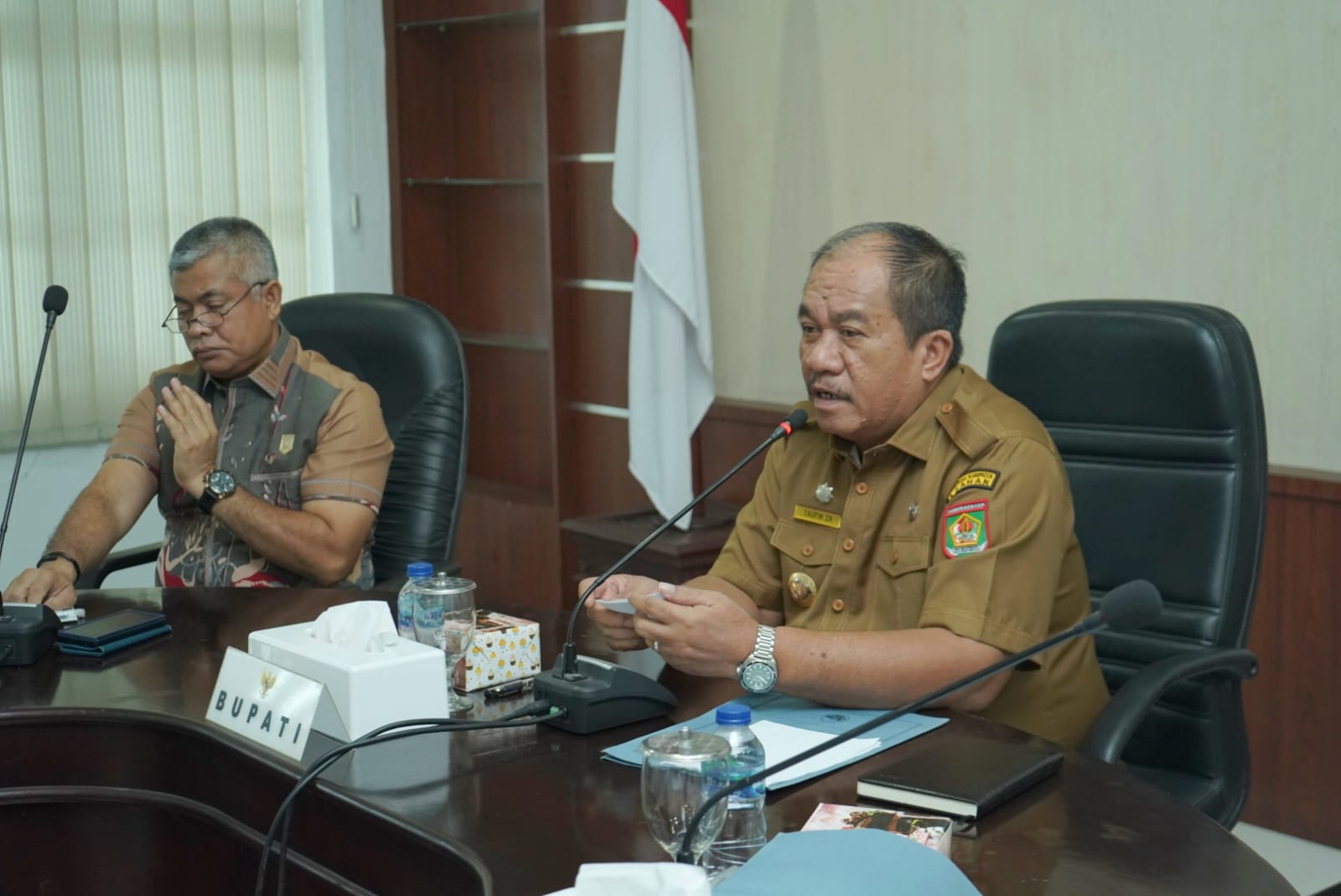 ASAHAN – Bupati Asahan Taufik Zainal Abidin Siregar, S.Sos., M.Si memimpin Rapat Forum Koordinasi Pimpinan Daerah (Forkopimda) Kabupaten Asahan yang bertempat di Aula Mawar Kantor Bupati Asahan, Senin (21/04/2025).