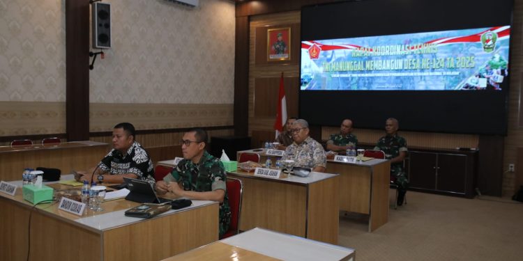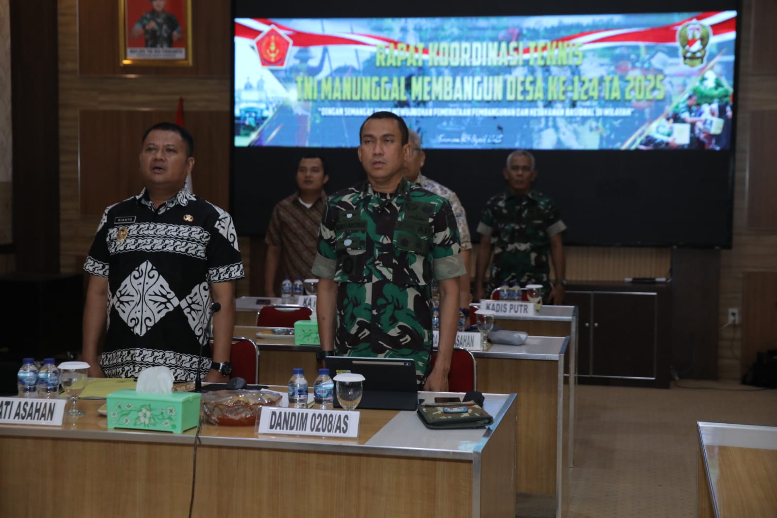 ASAHAN – Wakil Bupati Asahan, Rianto, SH., MAP mengikuti kegiatan Video Conference (Vicon) rapat koordinasi teknis (Rakornis) TNI Manunggal Membangun Desa (TMMD) ke-124 Tahun Anggaran 2025 yang bertema “Dengan Semangat TMMD Mewujudkan Pemerataan Pembangunan dan Ketahanan Nasional di Wilayah”.