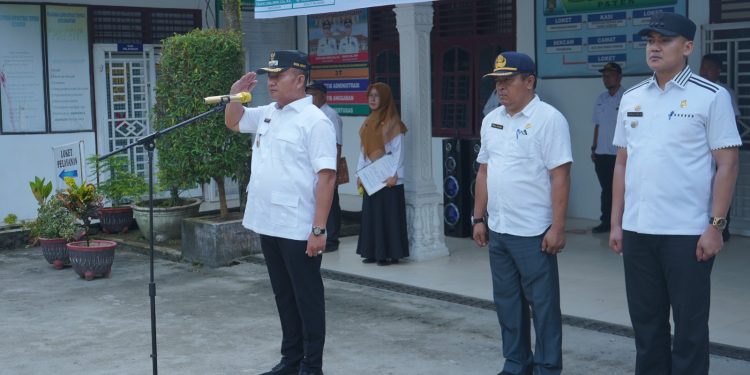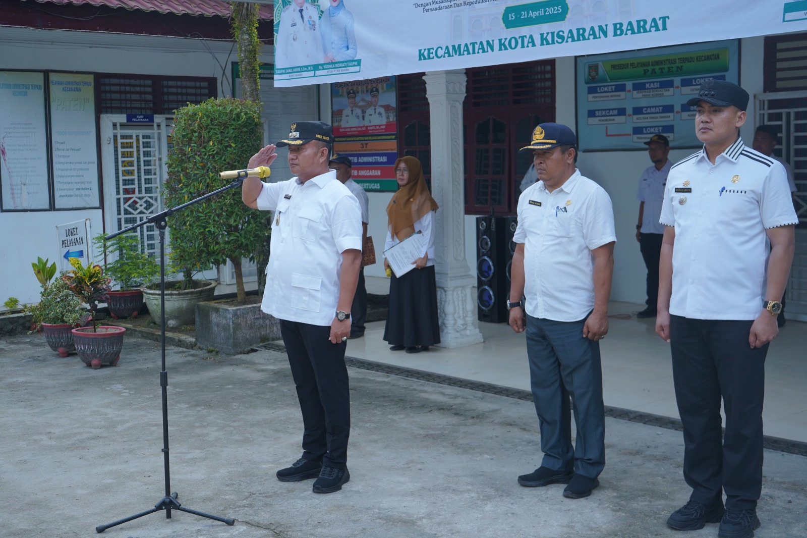 ASAHAN – Wakil Bupati Asahan Rianto, SH., MAP memimpin apel gabungan di Kecamatan Kota Kisaran Barat, Rabu (16/04/2025). Pada apel ini Wakil Bupati Asahan menekankan kepada Camat Kota Kisaran Barat dan seluruh perangkat Aparatur Kecamatan, para Lurah, dan jajaran lain sampai pada tingkat Kepala Lingkungan untuk tetap menjaga kedisiplinan dalam menjalankan tugas sesuai dengan tupoksi yang telah masing-masing emban.