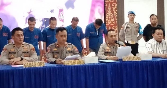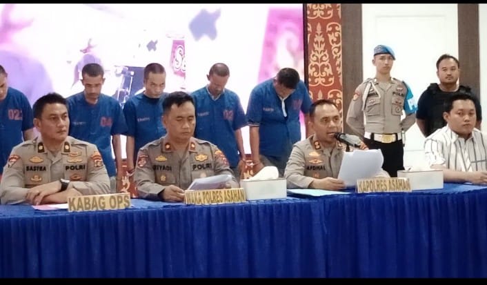 Dalam keterangannya Kapolres Asahan, AKBP Afdhal Junaidi didampingi Kasatreskrim AKP Ghulam Yanuar Lutfi dan Kanit Jatanras Ipda Asido Nababan menjelaskan dalam kasus tersebut pihaknya telah meringkus 6 orang pelaku masing-masing berinisial MMA (33) warga Jalan Sisingamangaraja, Lingkungan II, Kelurahan Kisaran Timur, Kecamatan Kisaran Timur, RMS (39) warga Desa Tanjung Alam, Kecamatan Sei Dadap, Kabupaten Asahan, IRW (45) warga Jalan Mas Mansyur, Lingkungan III, Kelurahan Kisaran Baru, Kecamatan Kisaran Barat, HZ (49) warga Jalan Syech Ismail II Lingkungan VI, Kecamatan Kisaran Barat dan HS (40) warga Kompleks PT BSP Lingkungan III, Kelurahan Gambir Baru, Kecamatan Kisaran Timur.