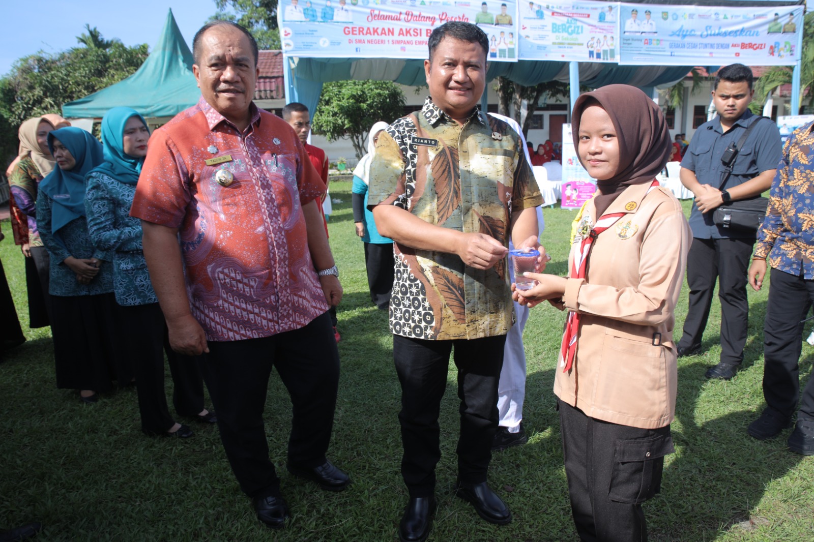 “Saya sangat senang dengan kegiatan kepedulian gizi anak-anak dan remaja di sekolah. Kita akan perhatikan semua agar mendapat gizi seimbang baik melalui pembagian vitamin atau edukasi kesehatan”. Ucap Bupati.