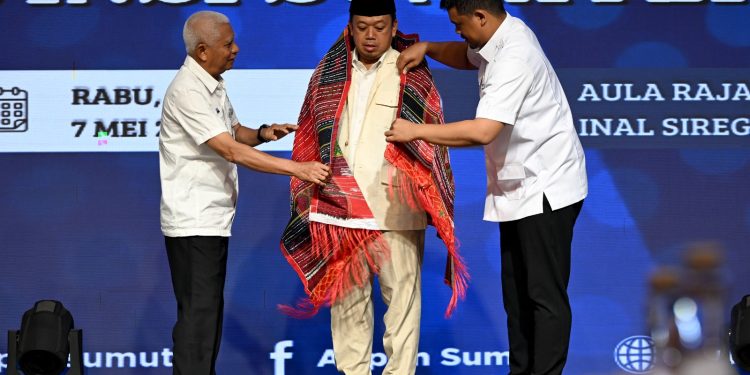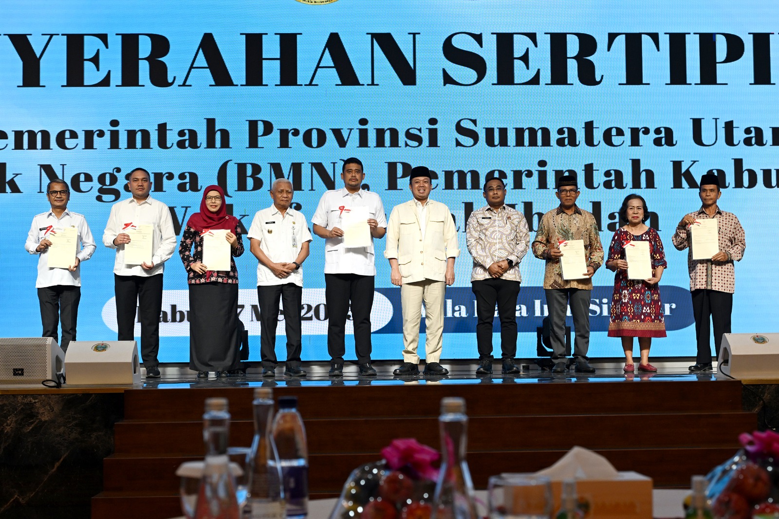 TASLABNEWS – Bupati Asahan Taufik Zainal Abidin, S.Sos., M.Si mengikuti rapat koordinasi mengenai penyelesaian masalah pertanahan di Sumut bersama dengan Menteri ATR/BPN Nusron Wahid di Aula Raja Inal Siregar, Kantor Gubernur Sumatera Utara, Rabu (07/05/2025).