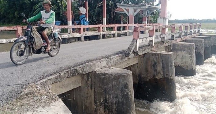 Dari pantauan di lapangan, pembatas jembatan tersebut dua sisi mengalami kerusakan, dan kalau tidak segera di perbaiki kwatir akan segera rusak.