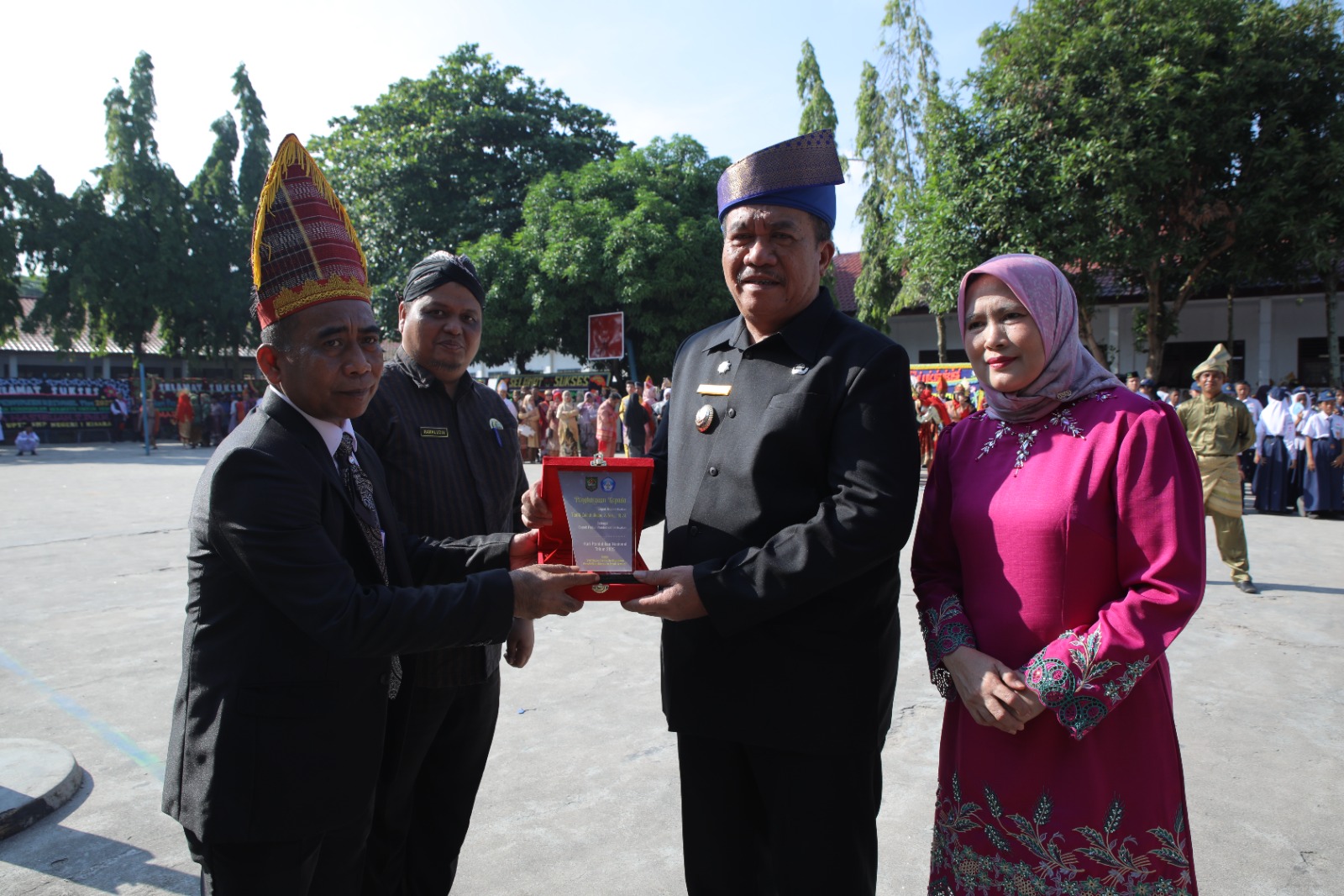 ASAHAN – Menggunakan Tanjak Melayu Bupati Asahan, Taufik Zainal Abidin, S.Sos., M.Si pimpin peringatan Hari Pendidikan Nasional (Hardiknas) di Kabupaten Asahan yang bertempat di halaman Sekolah SMP Negeri 2 Kisaran pada Jumat, 02/05/2025.