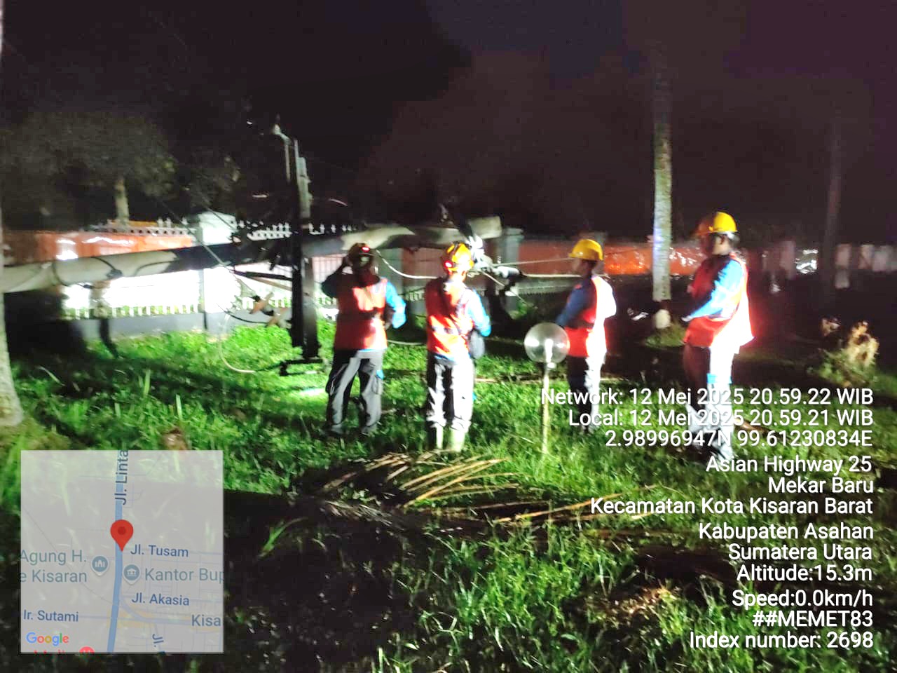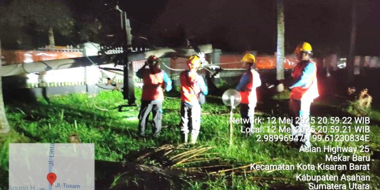 TASLABNEWS, ASAHAN – PLN ULP cabang kisaran kabupaten Asahan Sumatra Utara bertindak cepat mengatasi gangguan aliran listrik akibat cuaca ekstrem hujan deras disertai angin kencang di Kota Kisaran dan sekitarnya, Senin, (12/5/2025) pukul 14.30 WIB sore