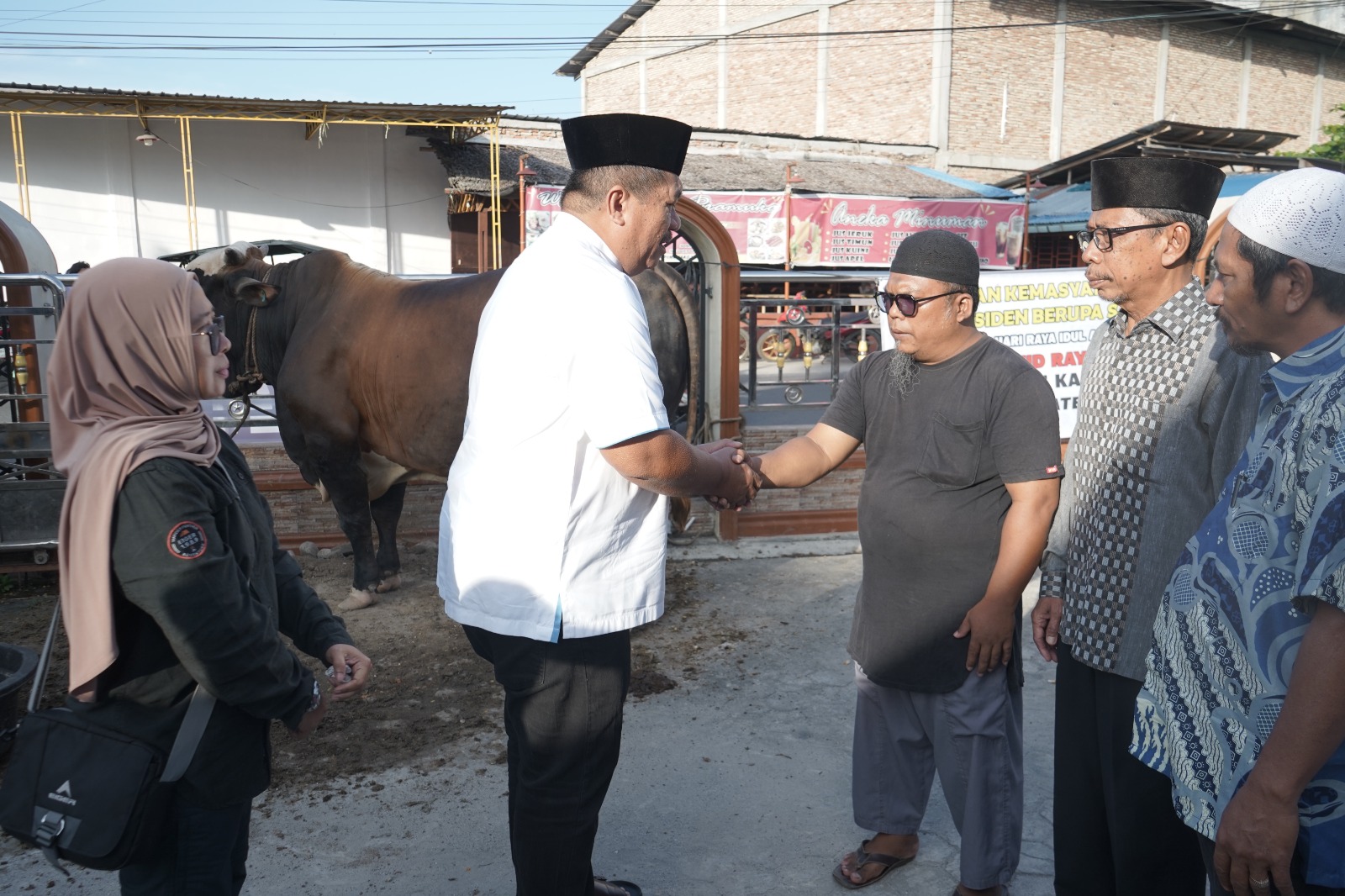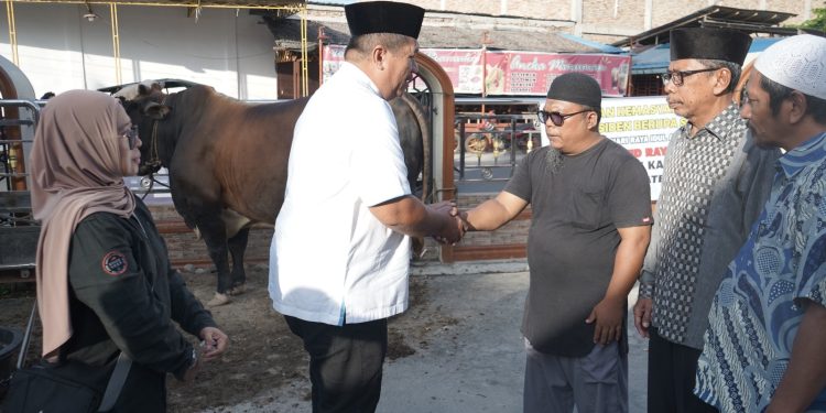 TASLABNEWS – Bupati Asahan, H. Taufik Zainal Abidin Siregar, S.Sos., M.Si didampingi Wakil Bupati Asahan, H. Rianto, S.H., M.AP secara resmi menyerahkan hewan kurban dari Presiden Republik Indonesia, H. Prabowo Subianto, kepada Panitia Qurban Masjid Raya Kisaran pada Sabtu, 7 Juni 2025.