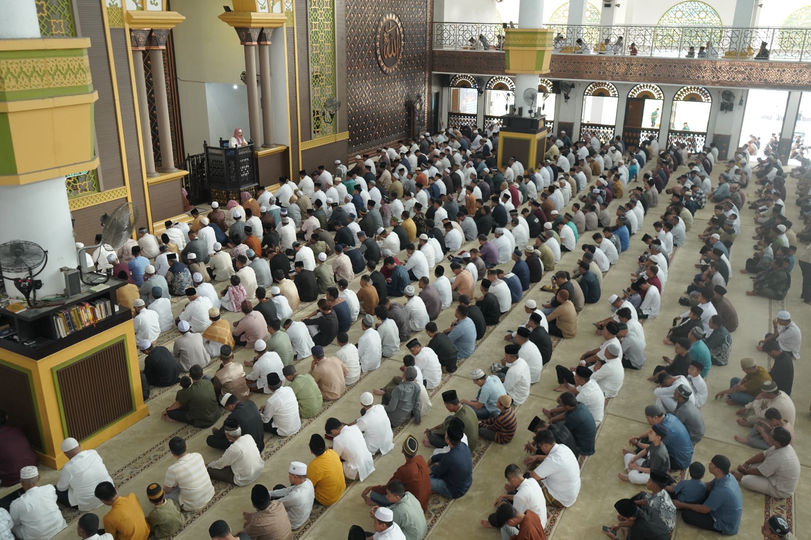 Sholat Idul Adha dipimpin oleh Imam H. Eddy Mulyadi, S.HI., MA dan diikuti dengan khotbah Idul Adha yang disampaikan oleh Ustaz H. Salman Abdullah Tanjung, Lc., MA, yang menekankan pentingnya keikhlasan dalam berkurban dan membangun semangat gotong royong dalam kehidupan bermasyarakat. (rel)