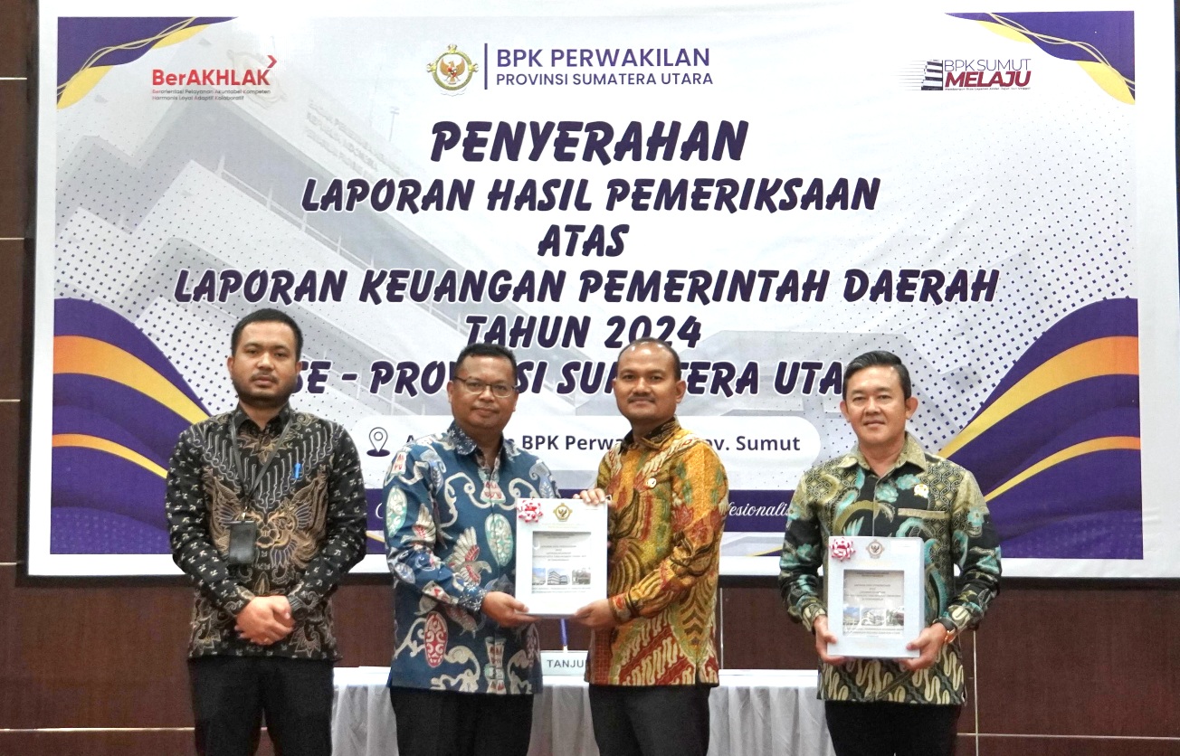 BPK Perwakilan Provinsi Sumatera Utara dalam kesempatan tersebut menyerahkan Laporan Hasil Pemeriksaan (LHP) atas Laporan Keuangan Pemerintah Daerah (LKPD) Tahun 2024 kepada 2 (Dua) Pemerintah Daerah.