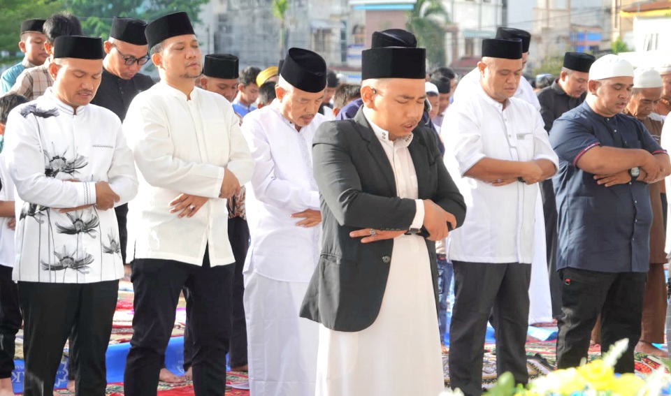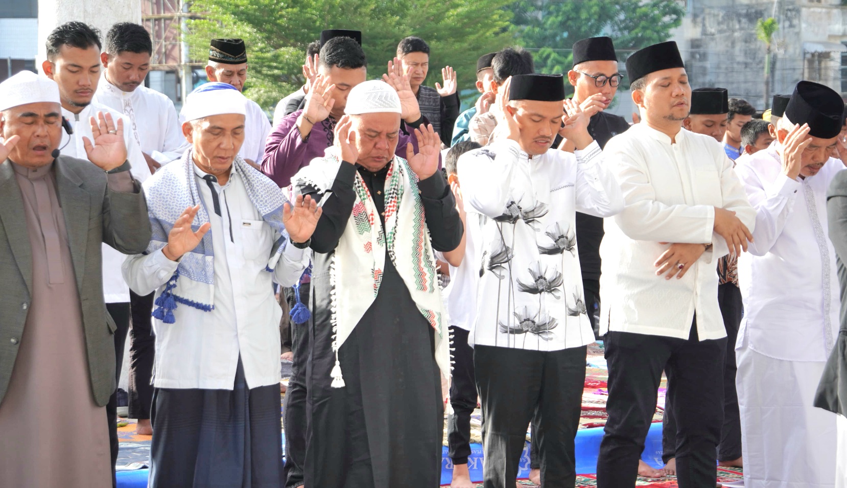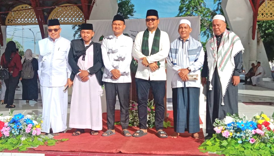 TASLABNEWS, TANJUNGBALAI – Wali Kota Tanjungbalai, Mahyaruddin Salim didampingi Ketua TP-PKK Ny. Mashandayani Mahyaruddin dan Wakil Wali Kota Muhammad Fadly Abdina didampingi Staf Ahli TP-PKK Ny. Desi Muhammad Fadly bersama Forkopimda, Pimpinan OPD, Ketua MUI Khajarul Aswadi mengikuti pelaksanaan sholat Idul Adha 1446 Hijriah di Lapangan Sultan Abdul Jalil Rahmadsyah, Kota Tanjungbalai, Jum’at (6/6/25).
