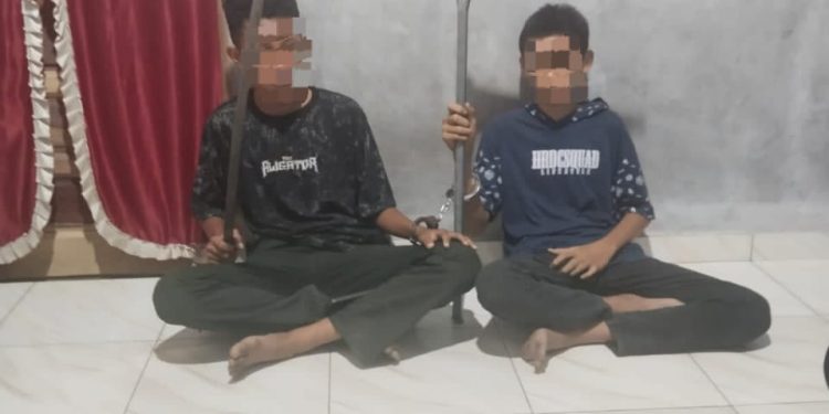 Dalam aksi tersebut, petugas bersama masyarakat berhasil mengamankan dua remaja yang masih di bawah umur, yakni MBAP (13) Tahun dan DE (14) Tahun, keduanya merupakan warga Dusun VIII Desa Meranti. Keduanya diamankan saat sedang melintas dari Dusun VII menuju Dusun VIII sambil membawa senjata tajam berupa parang panjang dan gergaji yang telah dimodifikasi.
