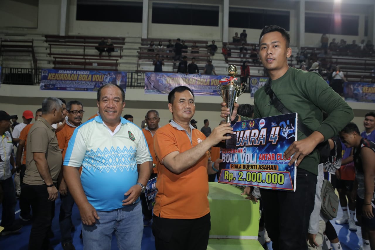“Saya mengucapkan selamat kepada tim yang berhasil meraih gelar juara. Turnamen ini bukan sekadar ajang kompetisi, tetapi juga merupakan sarana untuk mempererat kebersamaan, meningkatkan semangat sportivitas, serta mempromosikan olahraga bola voli di Kabupaten Asahan,” ujar Bupati.