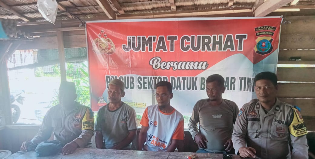 Demikian juga pada hari Jumat (18/7), personil Polsek Datuk Bandar Polres Tanjungbalai melaksanakan kegiatan Jumat Curhat di warung kopi milik Sahad, di kawasan Jalan MT. Haryono, Lingkungan V, Kelurahan Selat Tanjung Medan, Kecamatan Datuk Bandar Timur, Kota Tanjungbalai.