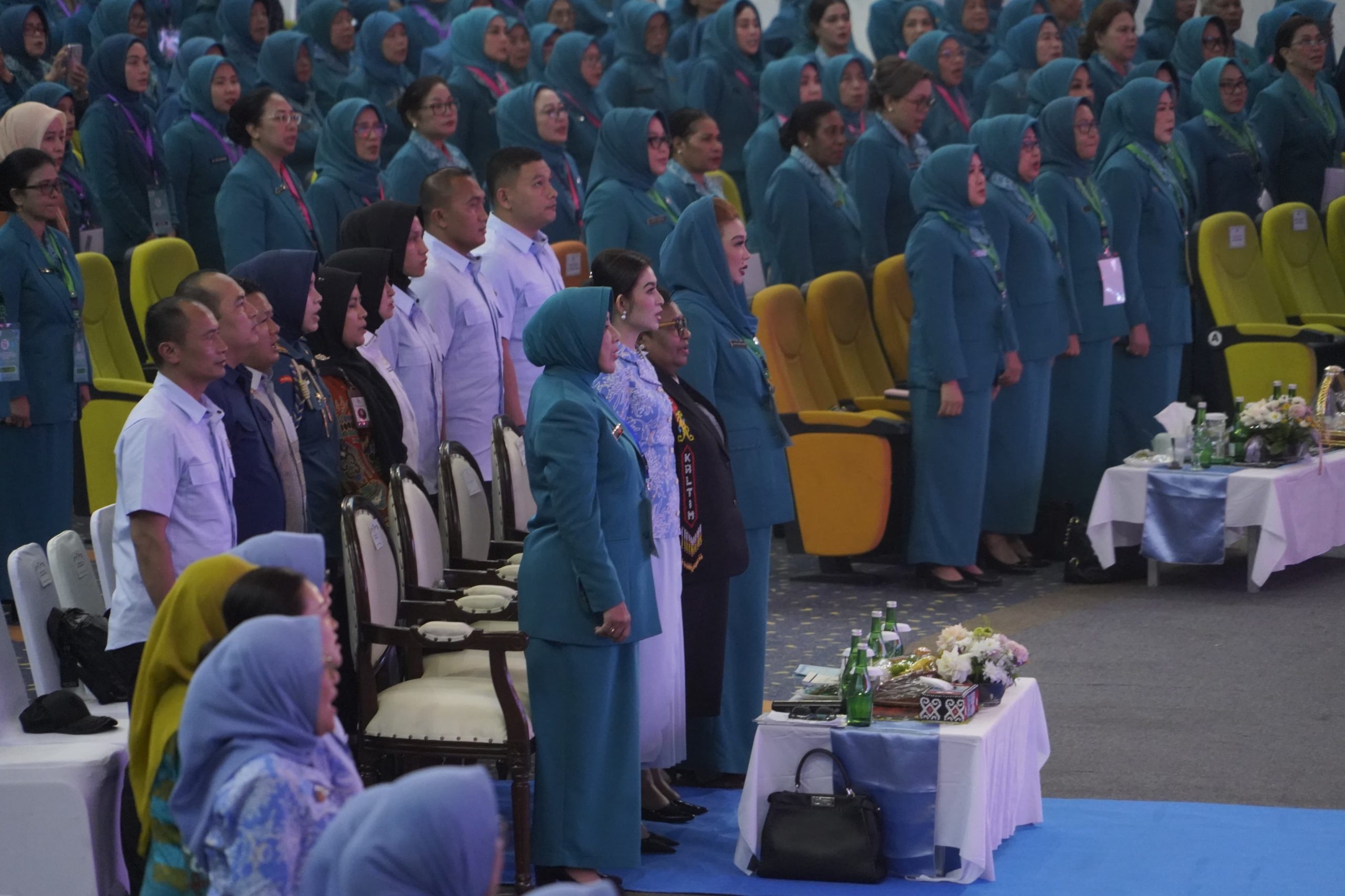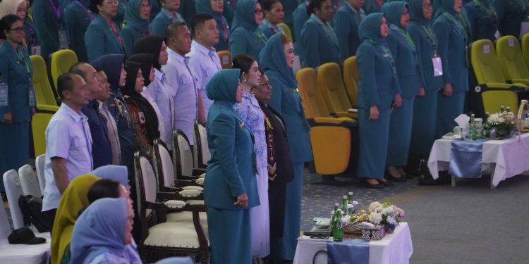TASLABNEWS – Plenary Hall, Samarinda Convention Center berubah menjadi pentas kolosal terhadap dedikasi perempuan, Selasa (8/7/2025) siang.