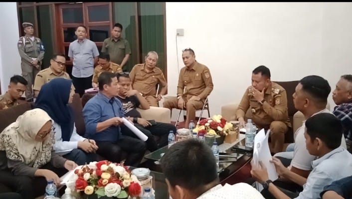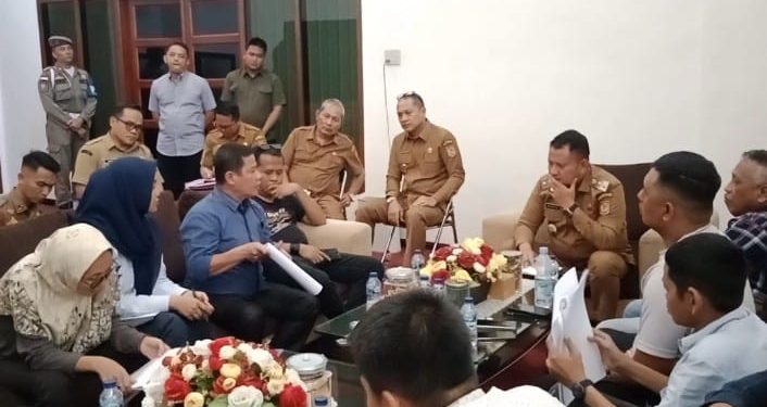 Para pengunjuk rasa akhirnya di terima oleh wakil Bupati Asahan Rianto.