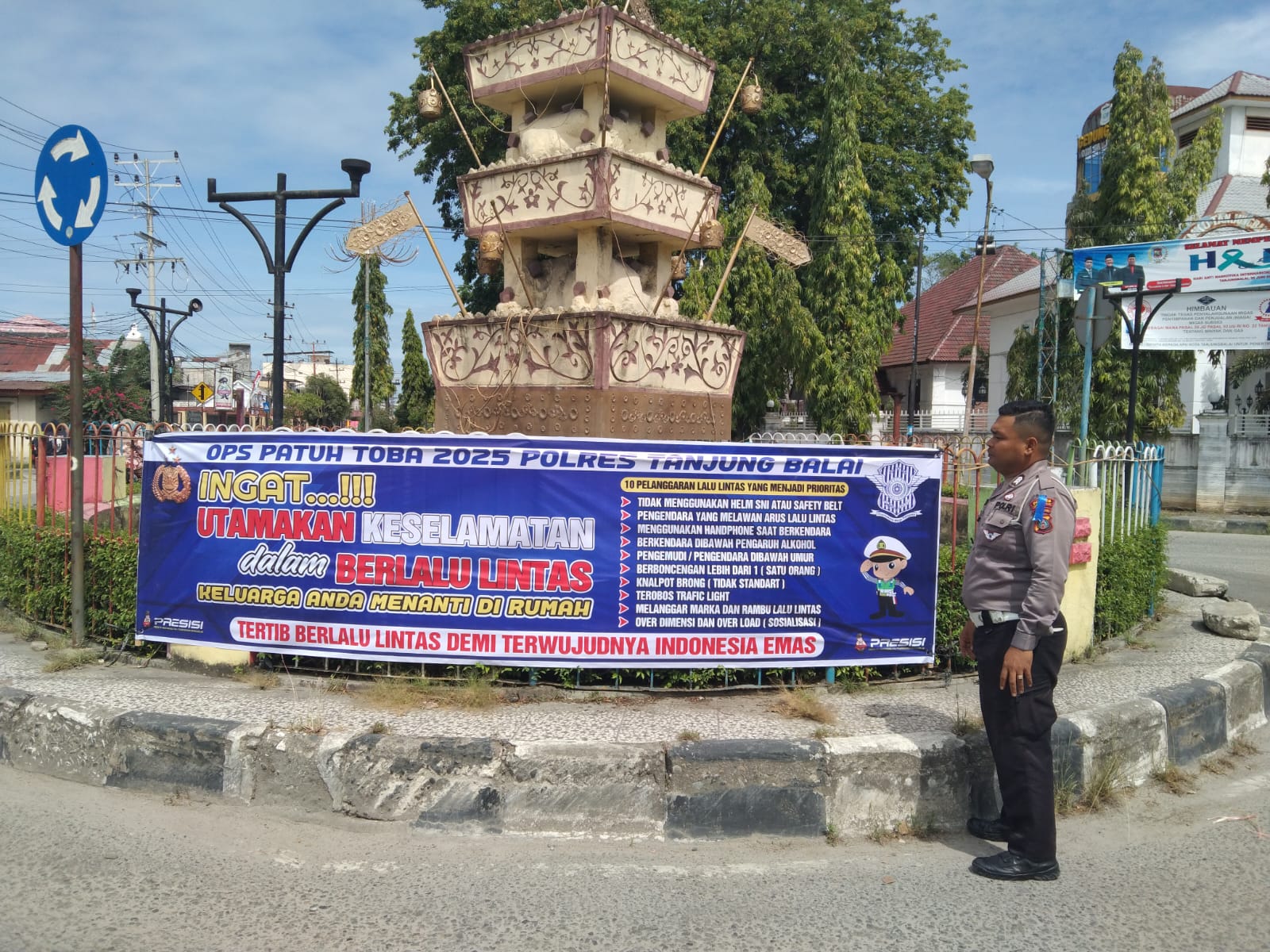 TANJUNGBALAI – Sosialisasikan dimulainya pelaksanaan kegiatan Operasi Patuh Toba 2025, Polres Tanjungbalai melalui Satuan Lalu Lintas (Satlantas) melakukannya dengan memasang spanduk.