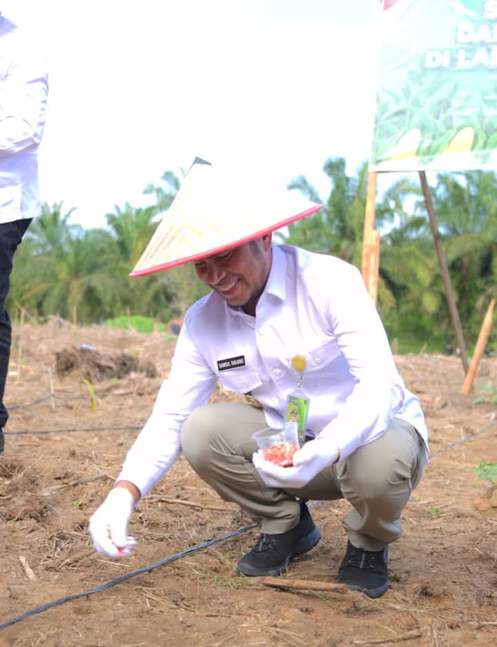 TASLABNEWS, LABURA-Wakil Bupati Labuhanbatu Utara (Labura), Dr. H. Samsul Tanjung, menghadiri kegiatan penanaman jagung kuartal III di lahan perhutanan sosial yang berada di Dusun II Simpang Membot, Desa Damuli Pekan, Kecamatan Kualuh Selatan, Labura, Rabu (09/7/2025).