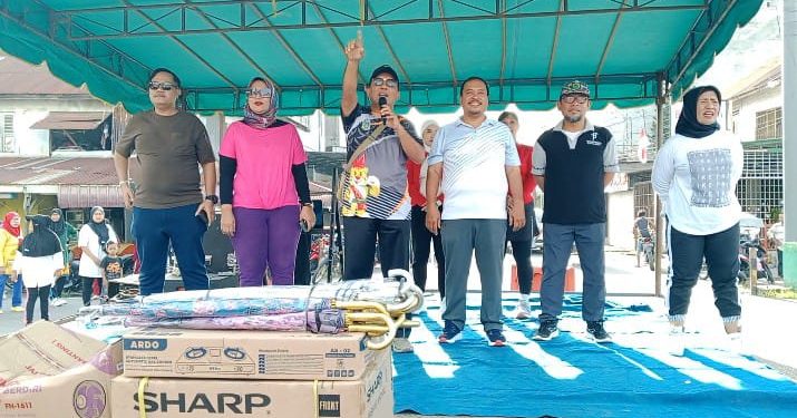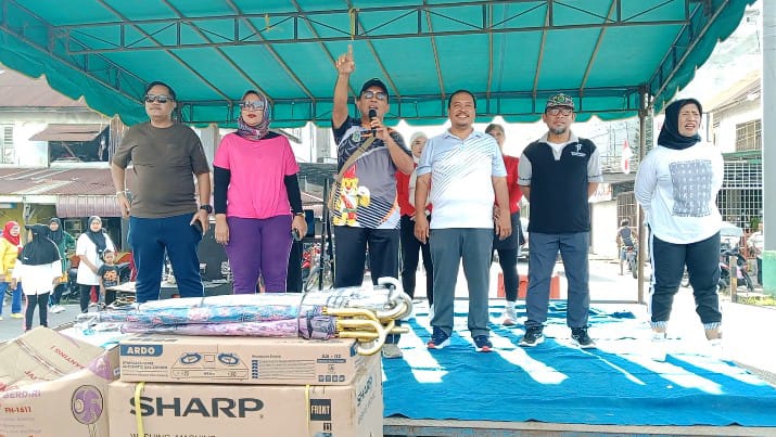 Para peserta senam sehat massal tampak larut dalam kegembiraan. Suasana menjadi seru dan semarak ditambah lagi iringan dari dentuman musik senam yang sangat kocak. Ribuan peserta pelajar siswa siswi SMKN dan SMAN serta masyarakat ikut senam sembari berjoget riang. Acara semakin lebih seru lagi saat peserta yang beruntung mendapatkan berbagai hadiah lucky draw yang disediakan panitia. (Edi/syaf)